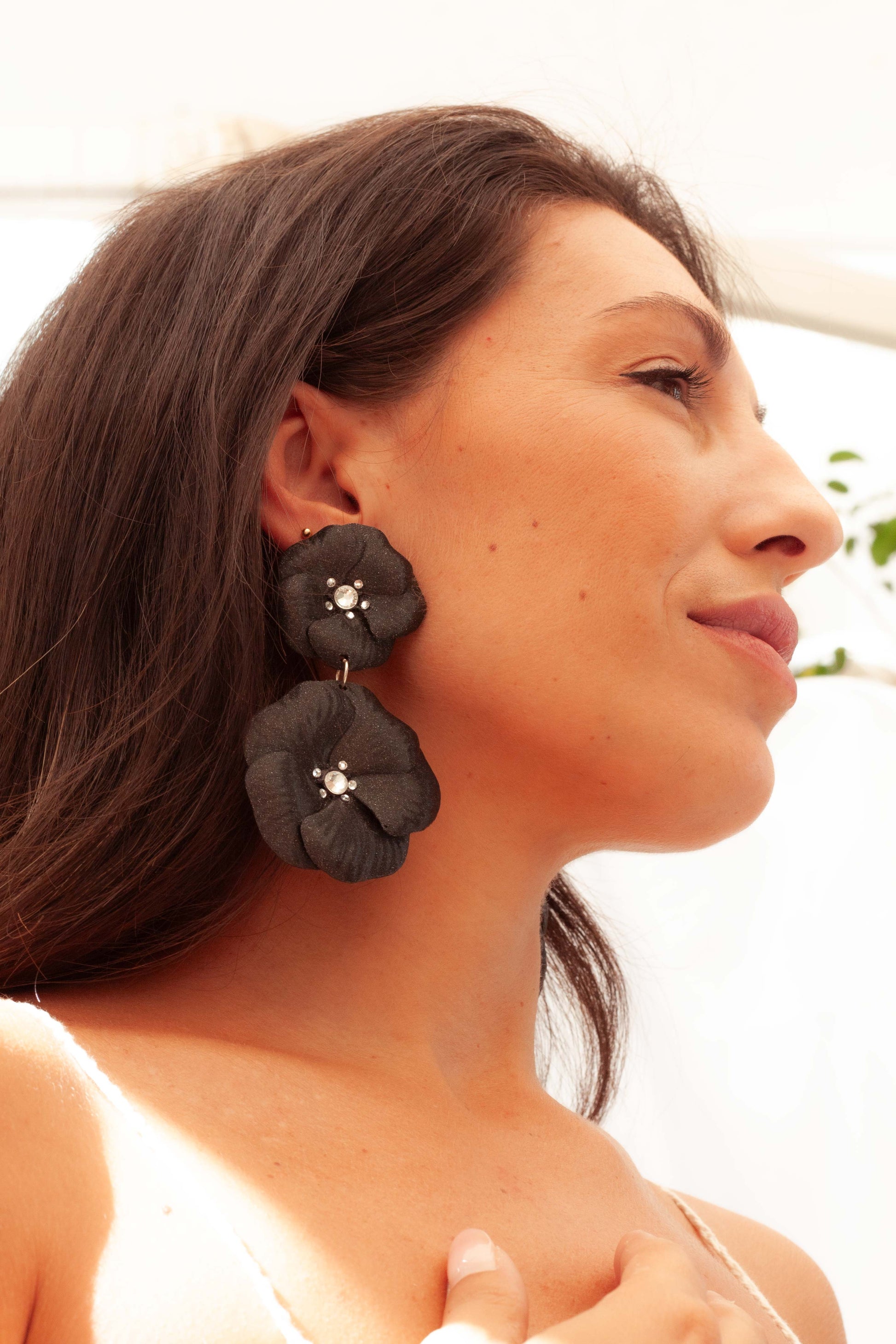 Conquista todas las miradas con los pendientes Amapola Magna Black. Grandes y ligeros, combinan a la perfección con un look de invitada o para comuniones, aportando un aire audaz y sofisticado. Su diseño impactante realza cualquier outfit sin renunciar a la comodidad en todo momento. Perfectos para quienes quieren destacar sin esfuerzo.