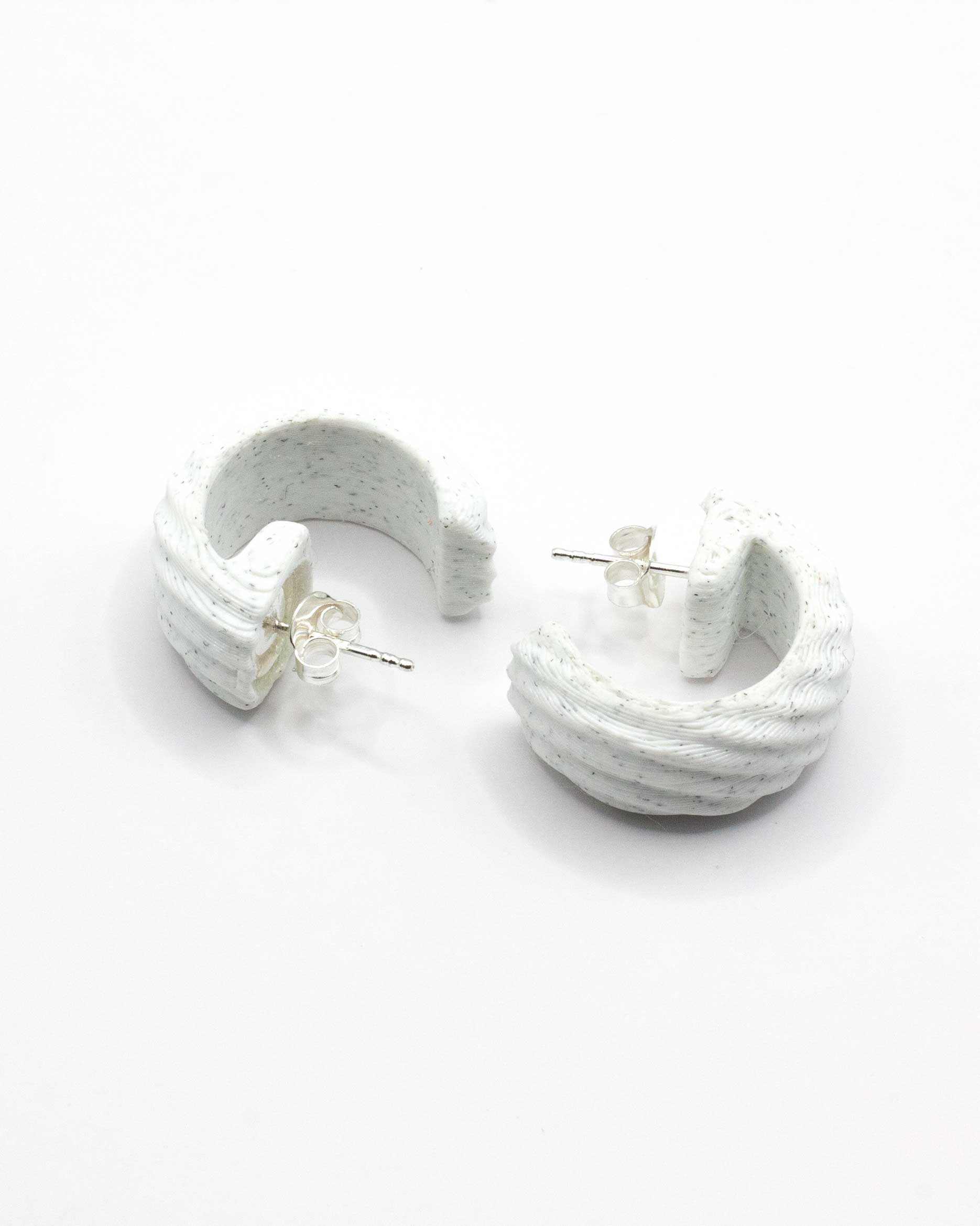 Estos Aros combinan la pureza del blanco con un sutil efecto veteado que recuerda a la piedra natural.