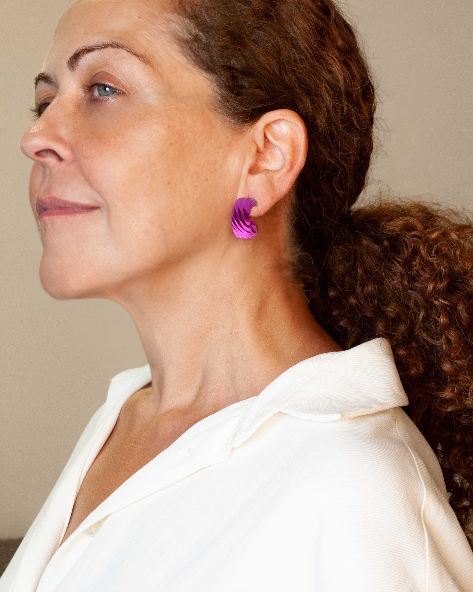 Tienen una forma sencilla pero con carácter, una superficie con ligeras ondas que atrapan la luz y un brillo sedoso que realza el color magenta buganvilla, alegre y sofisticado a la vez.