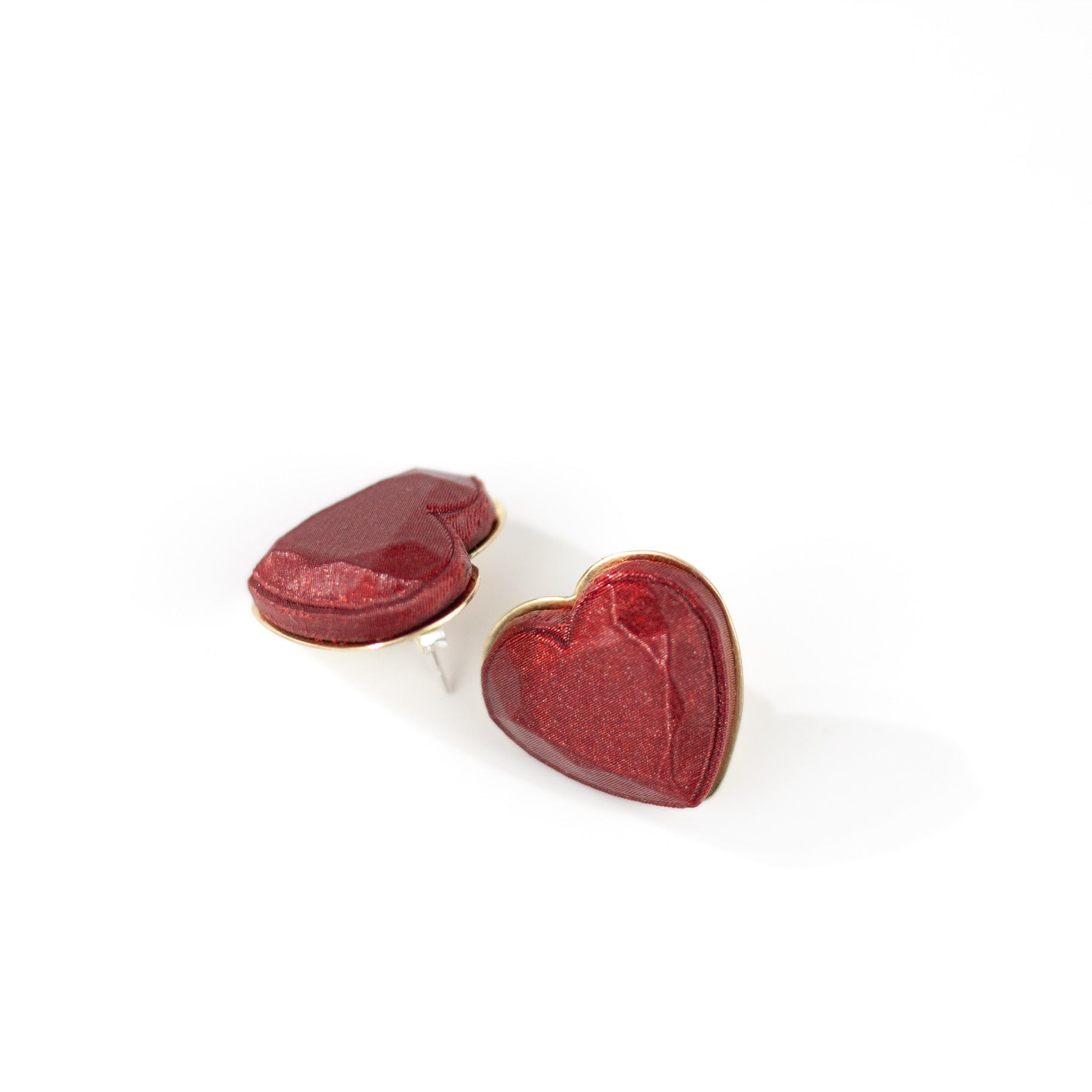Cada pendiente está hecho sobre una base de latón pulido hecha a mano, una a una, con el palillo de plata de ley y un corazón impreso en 3D con corte tipo joya, en un tono rojo profundo y contemporáneo que no necesita adornos. Son ligeros, cómodos y pensados para llevarlos a diario: un recordatorio de que todos los amores cuentan.