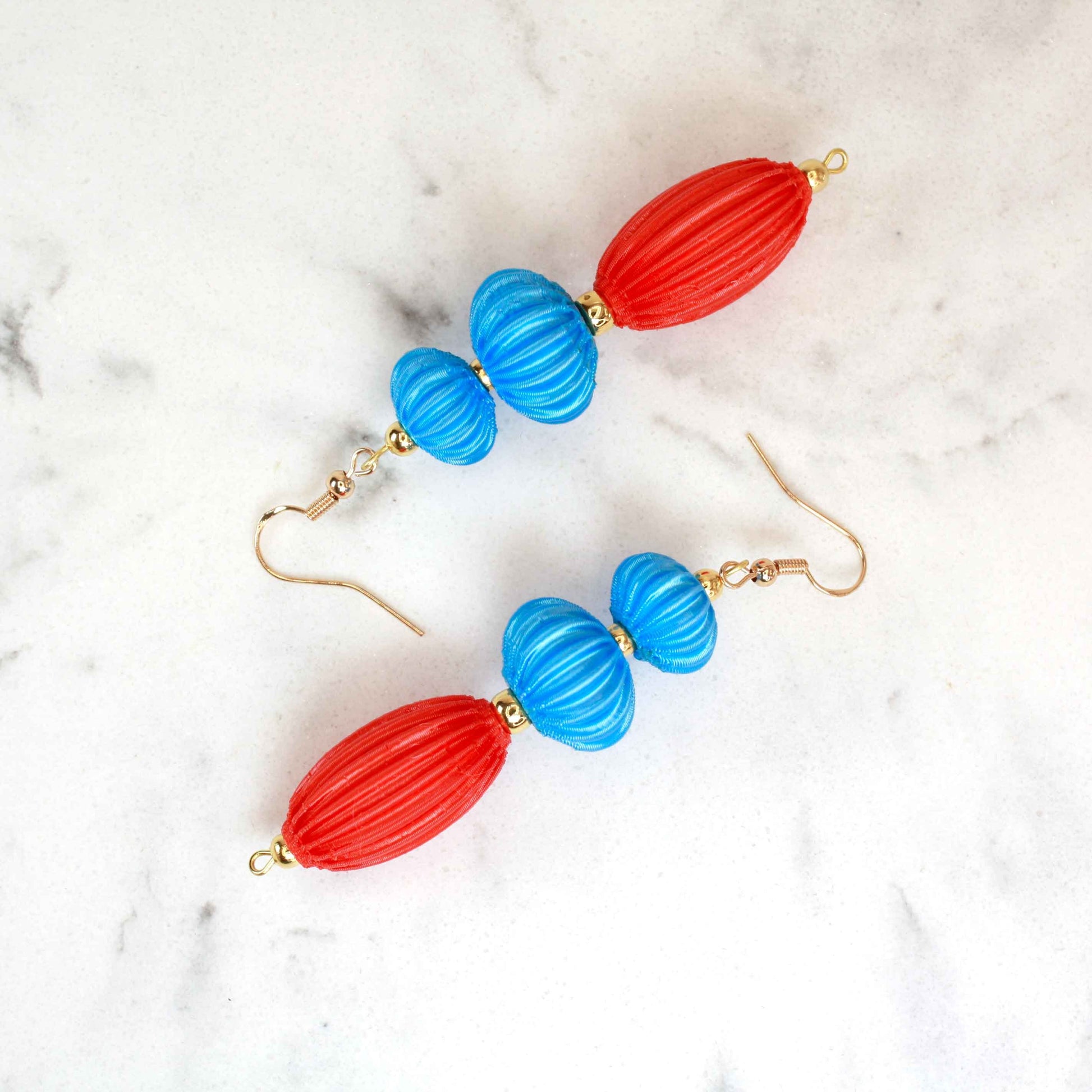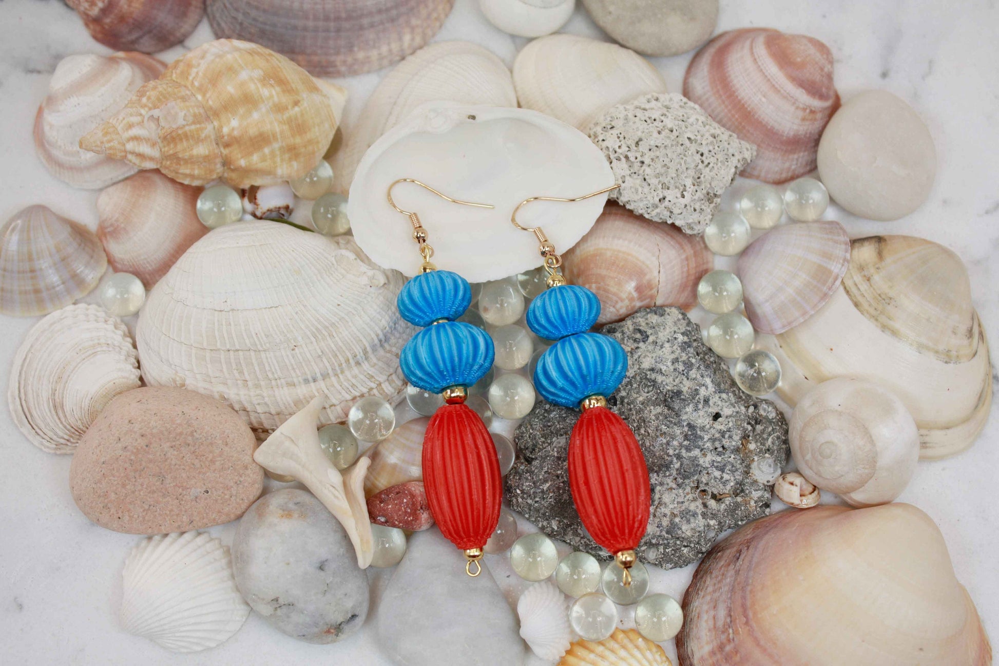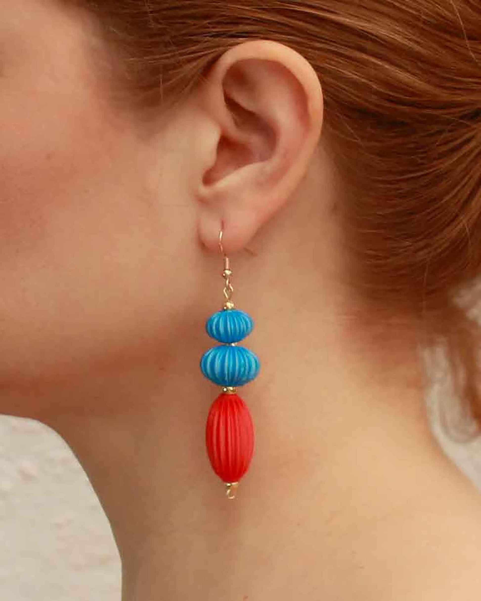 Anemone earrings from the Lukt collection, in Cyan and Coral, 3D printed, very light and sophisticated.