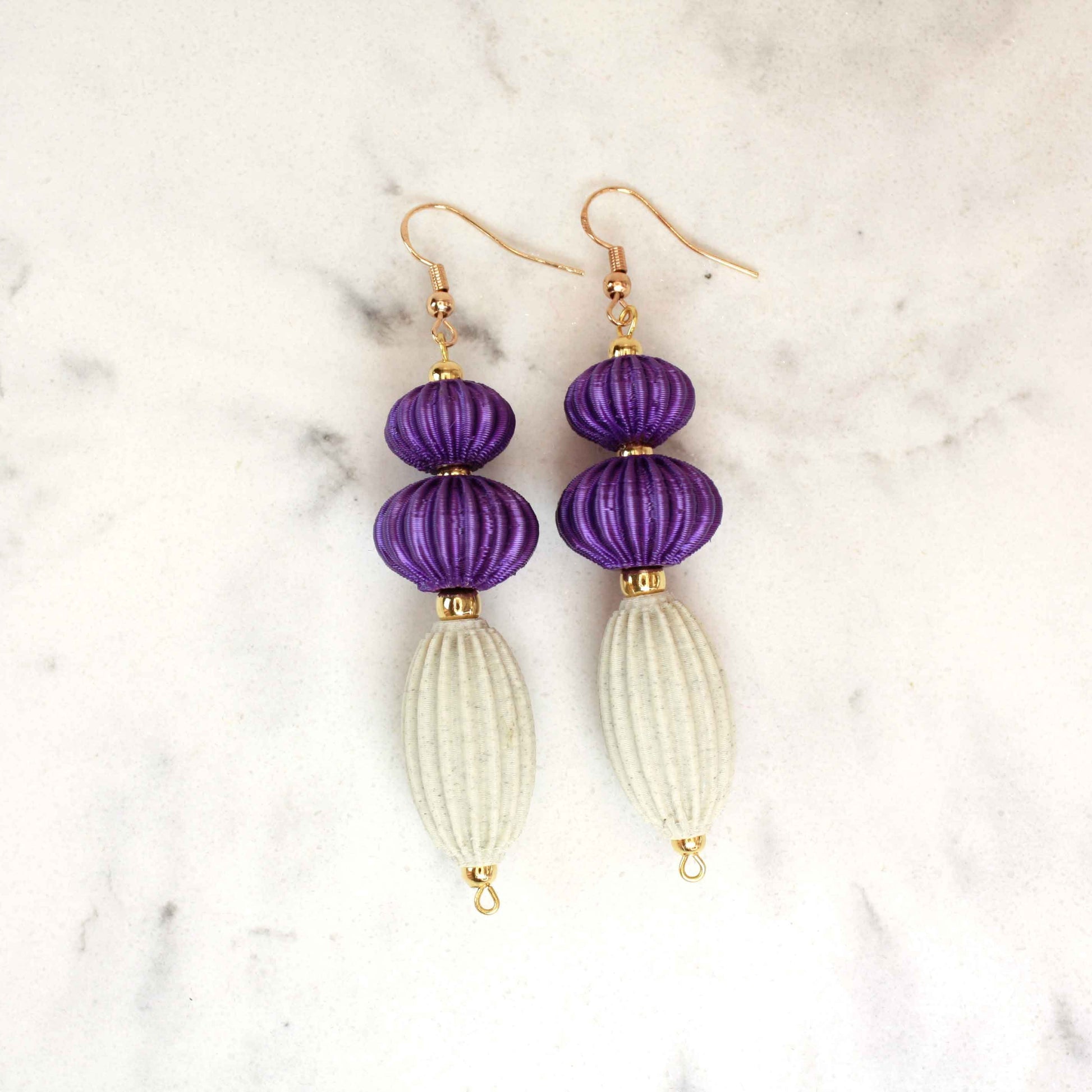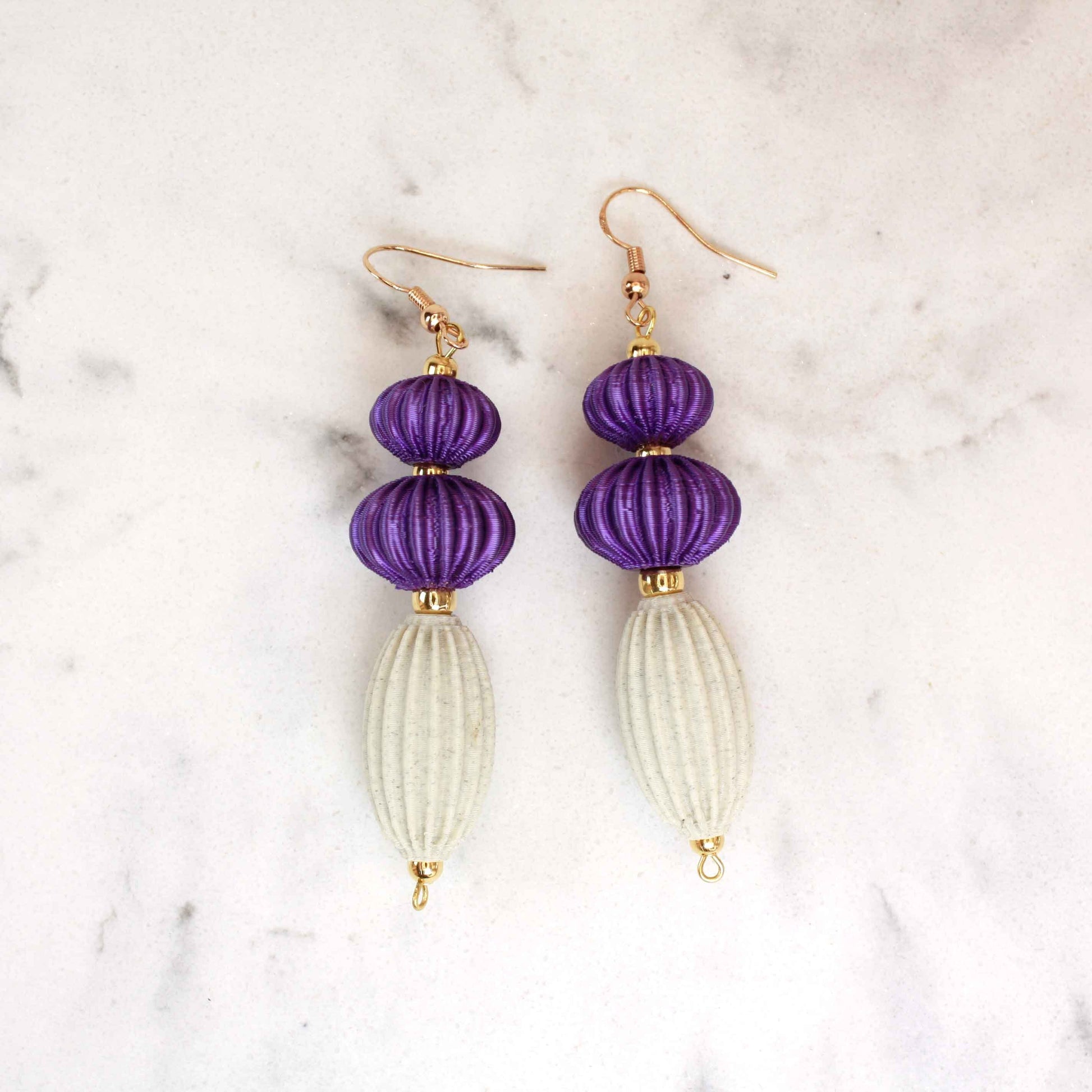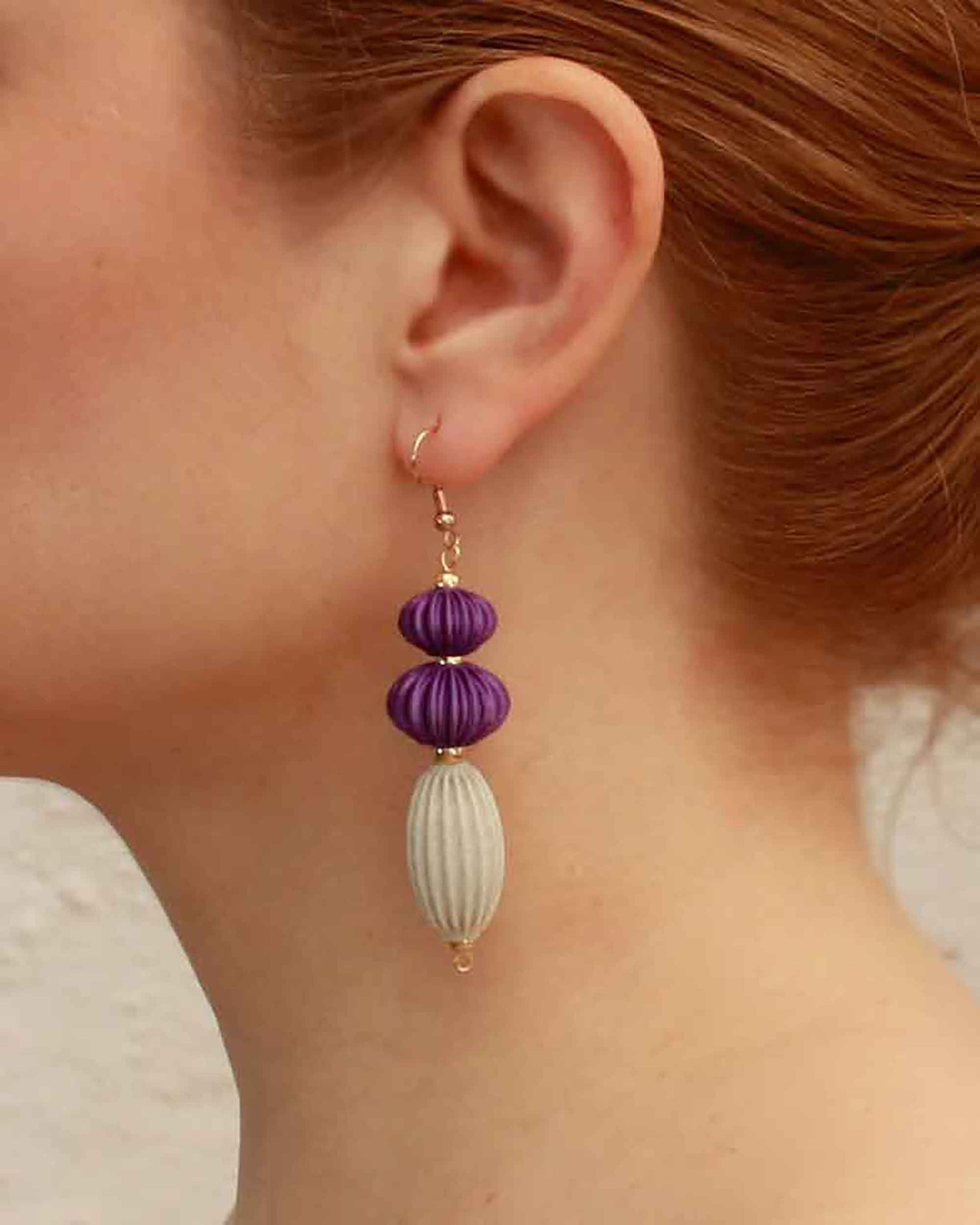 Anemone earrings from the Lukt collection, in Purple and Marble, 3D printed, very light and elegant.