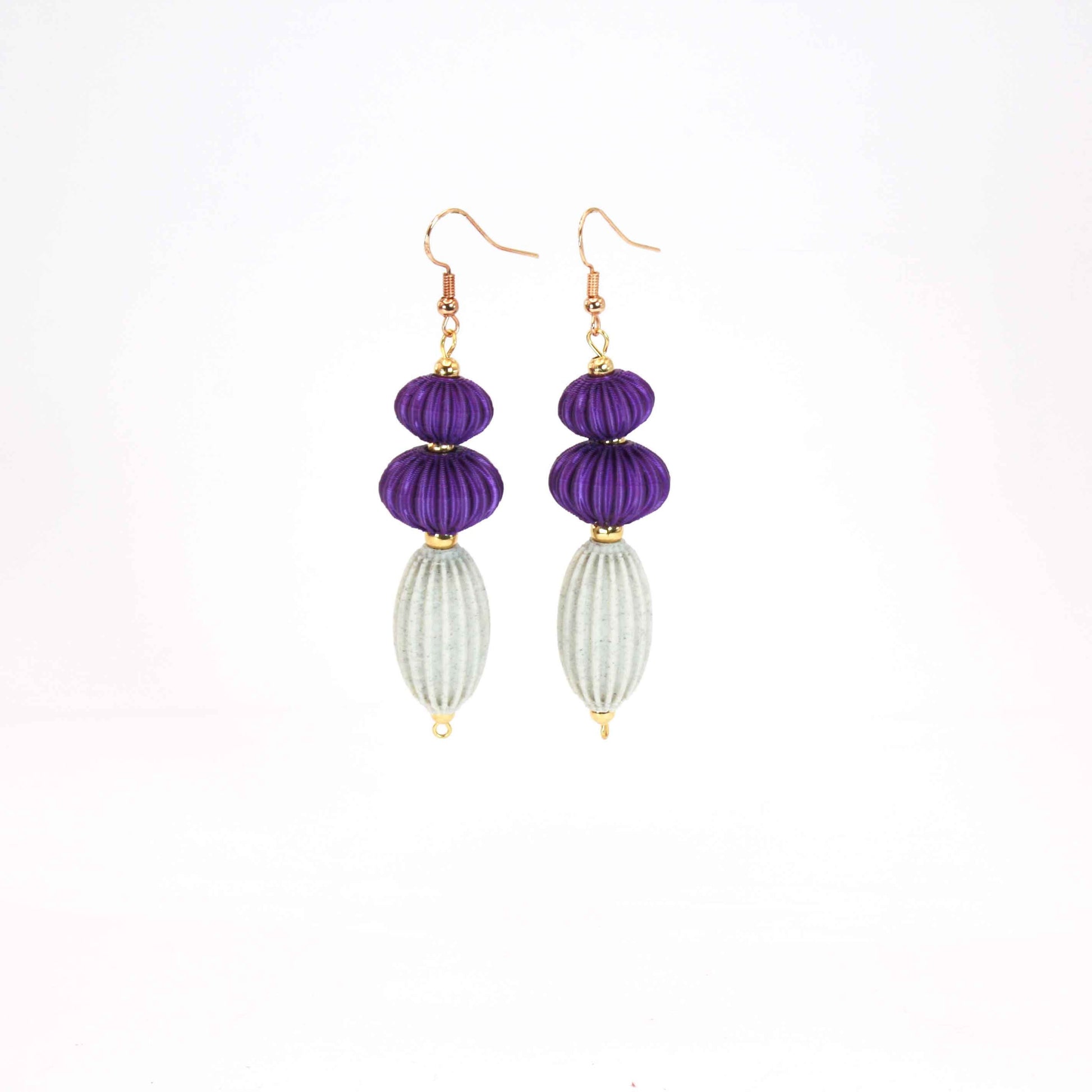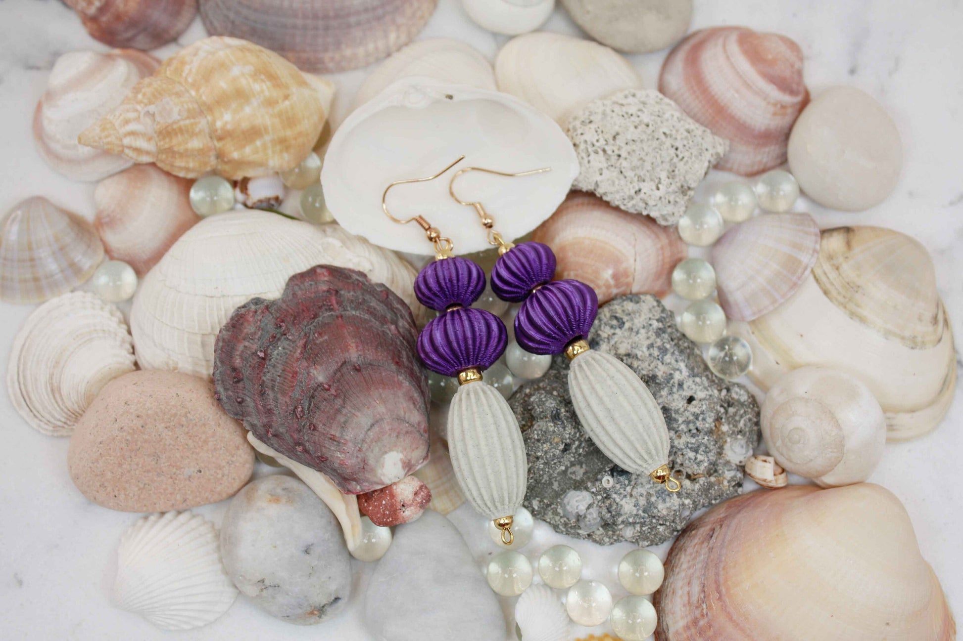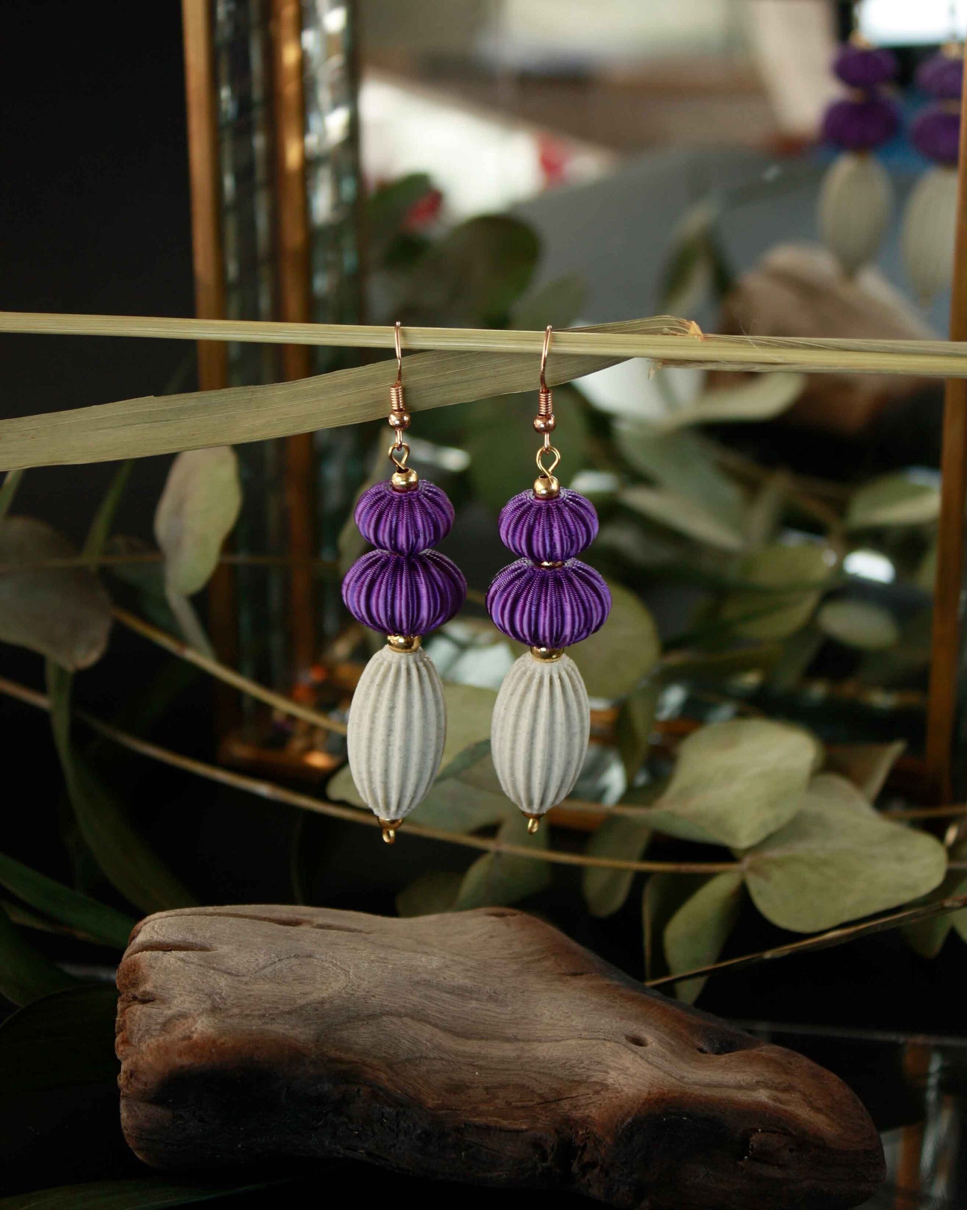 Anemone earrings from the Lukt collection, in Purple and Marble, 3D printed, very light and elegant.