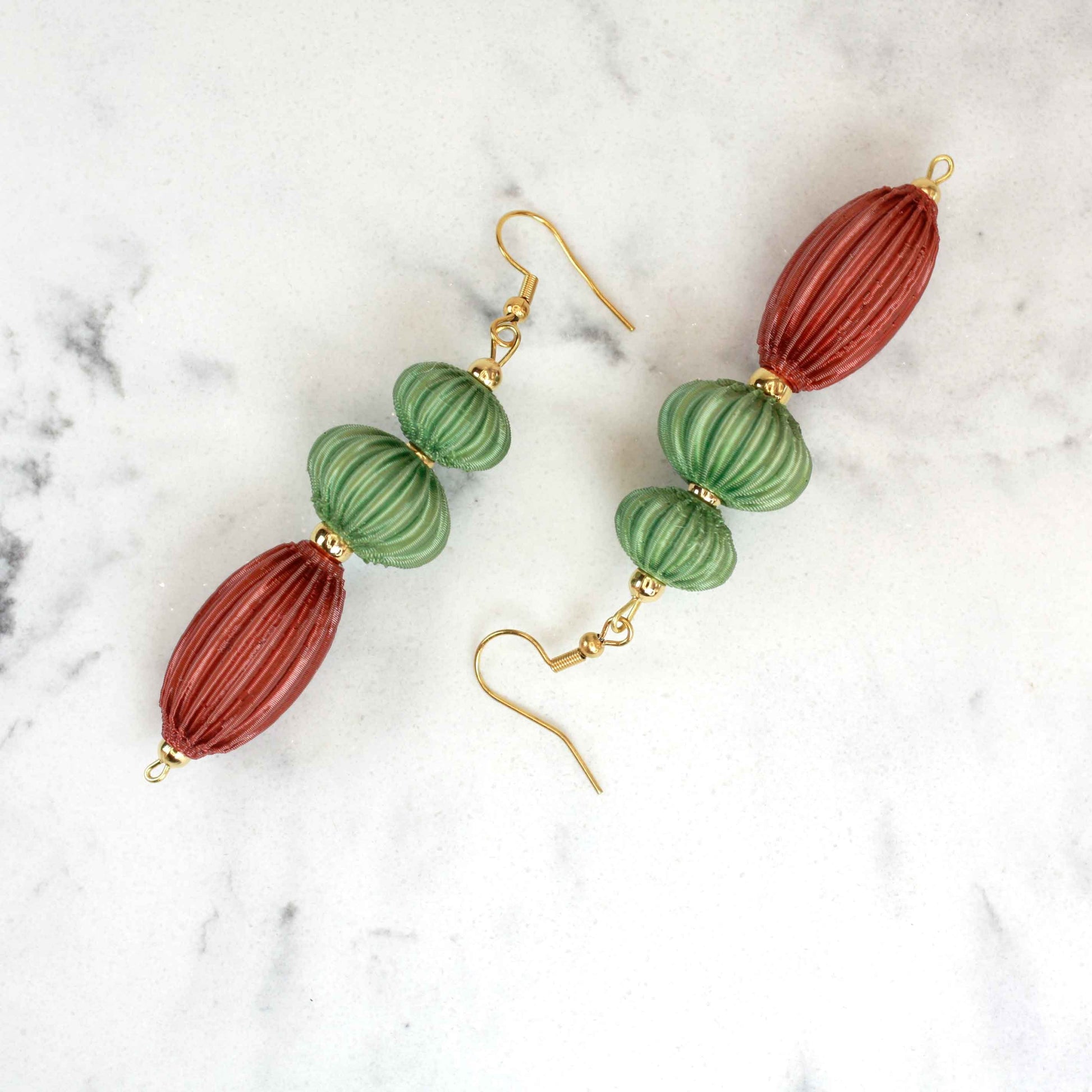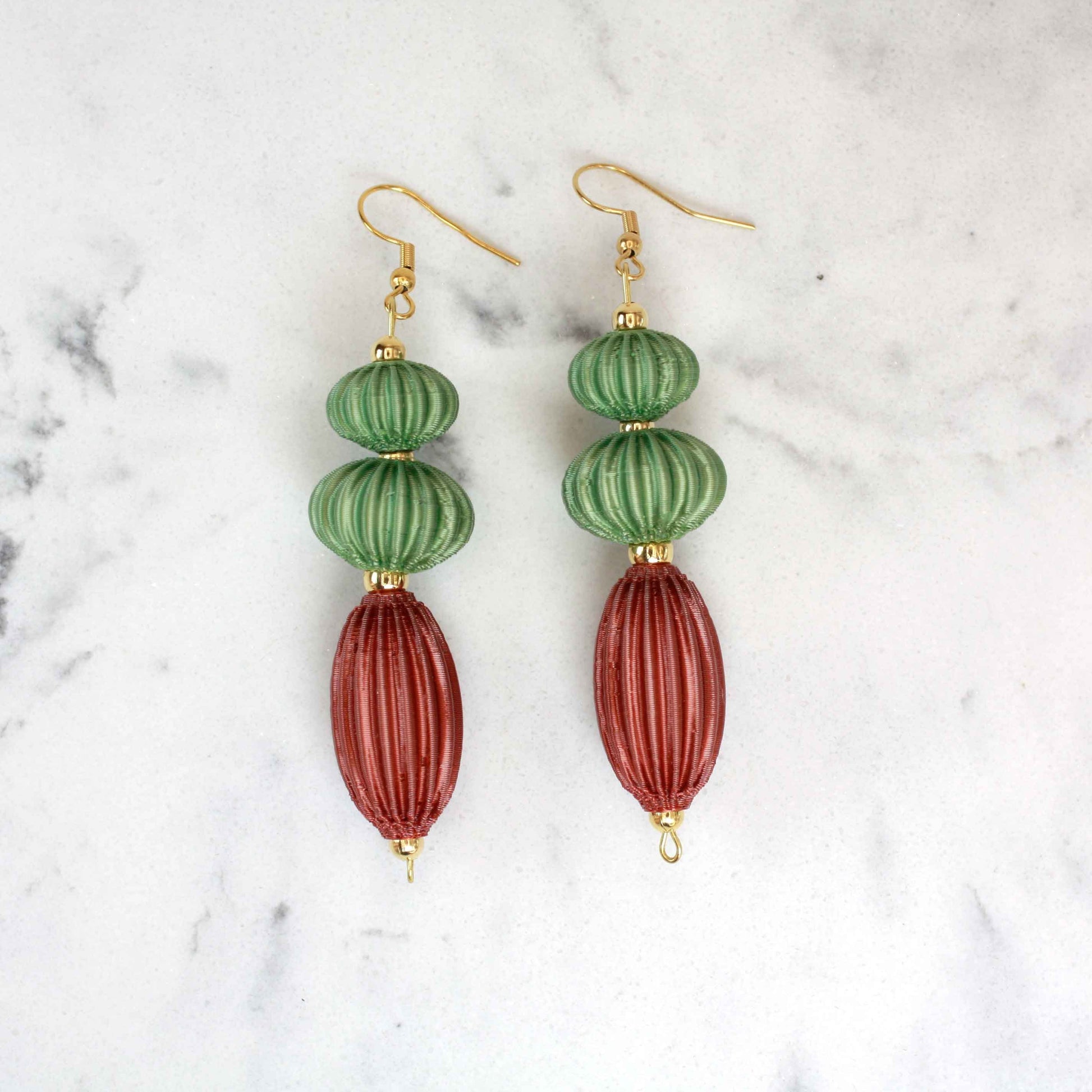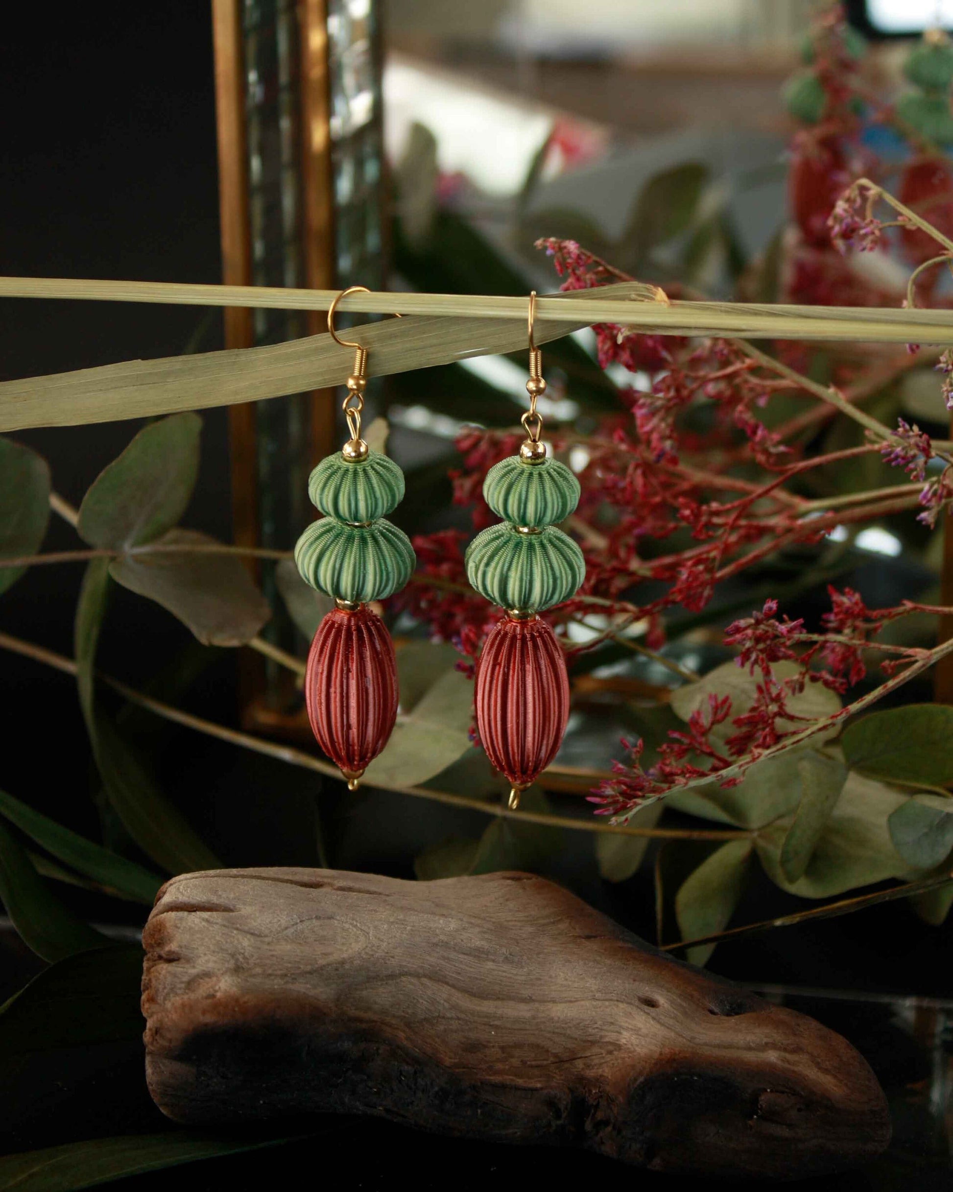 Anemone earrings from the Lukt collection, in Leaf and Cooper Green, 3D printed, very light and sophisticated.