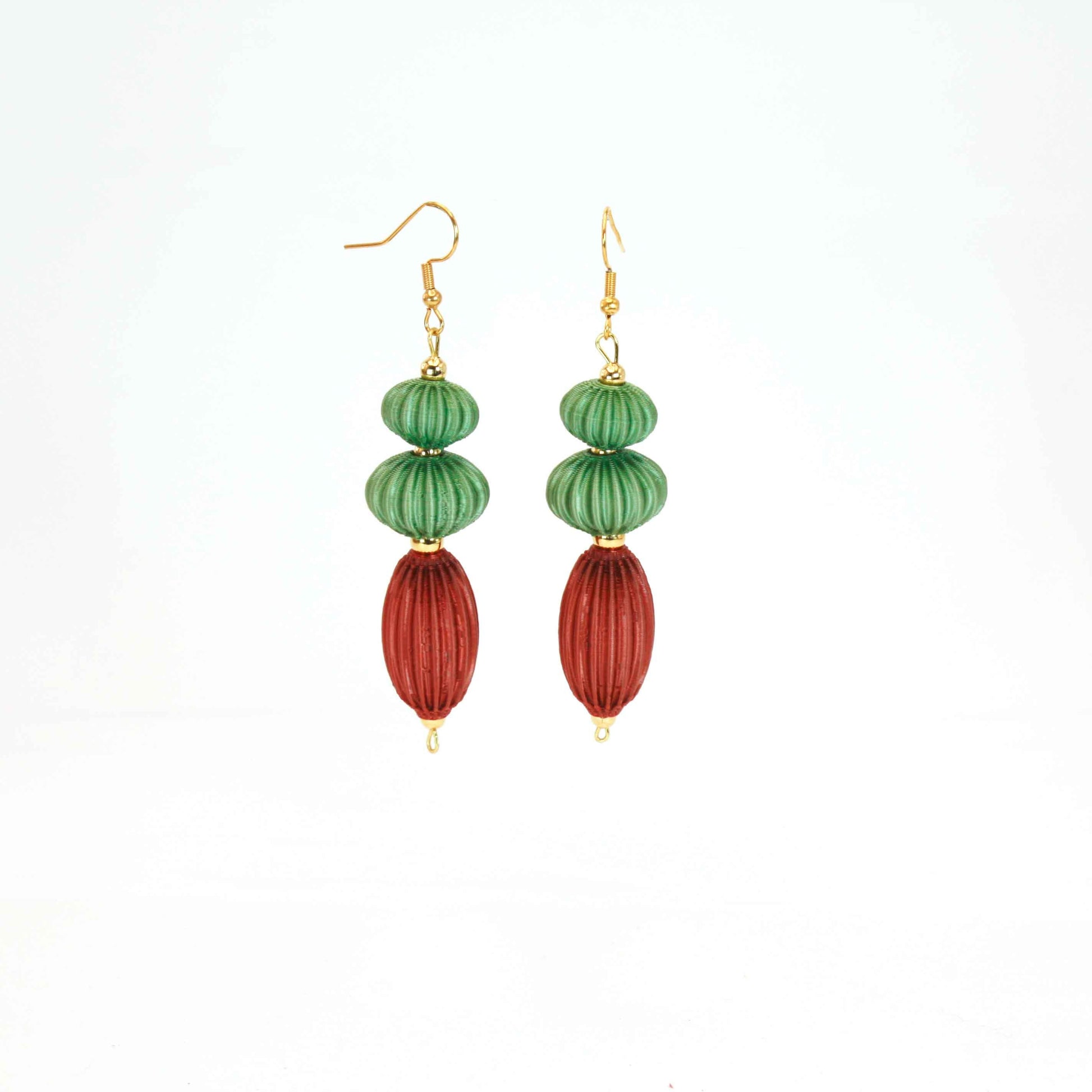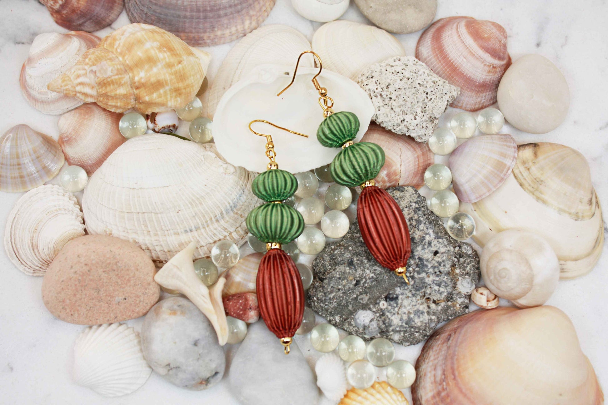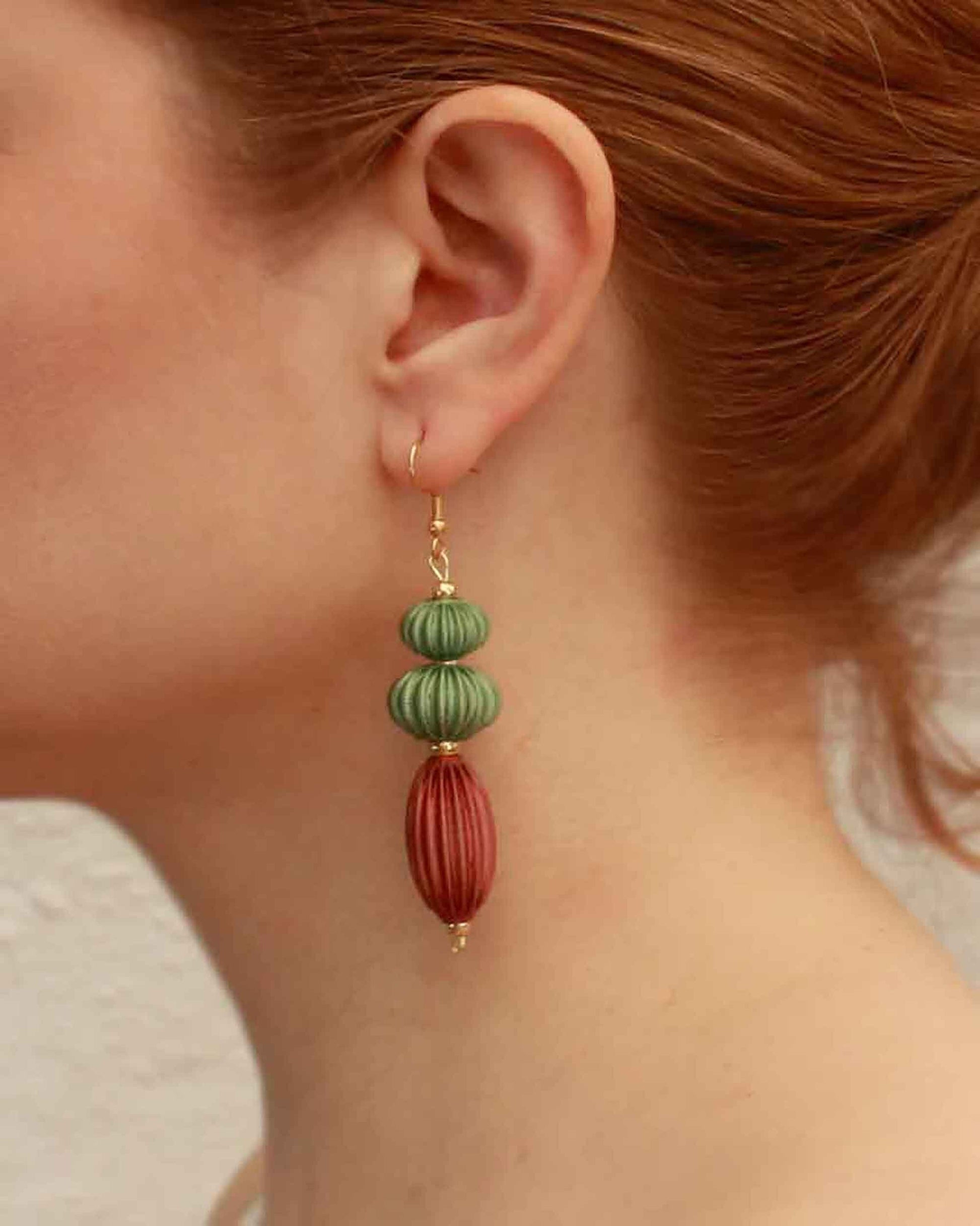 Anemone earrings from the Lukt collection, in Leaf and Cooper Green, 3D printed, very light and sophisticated.