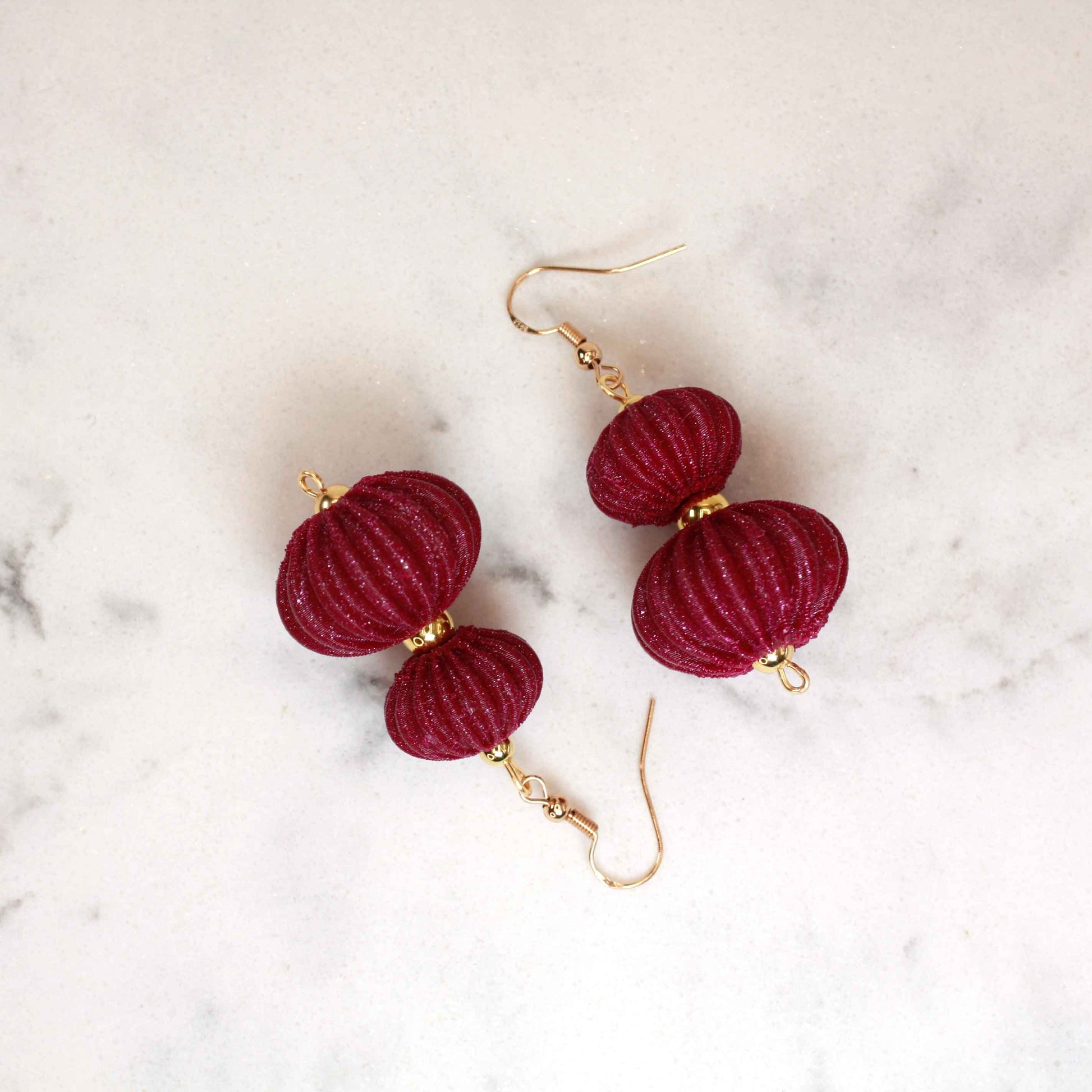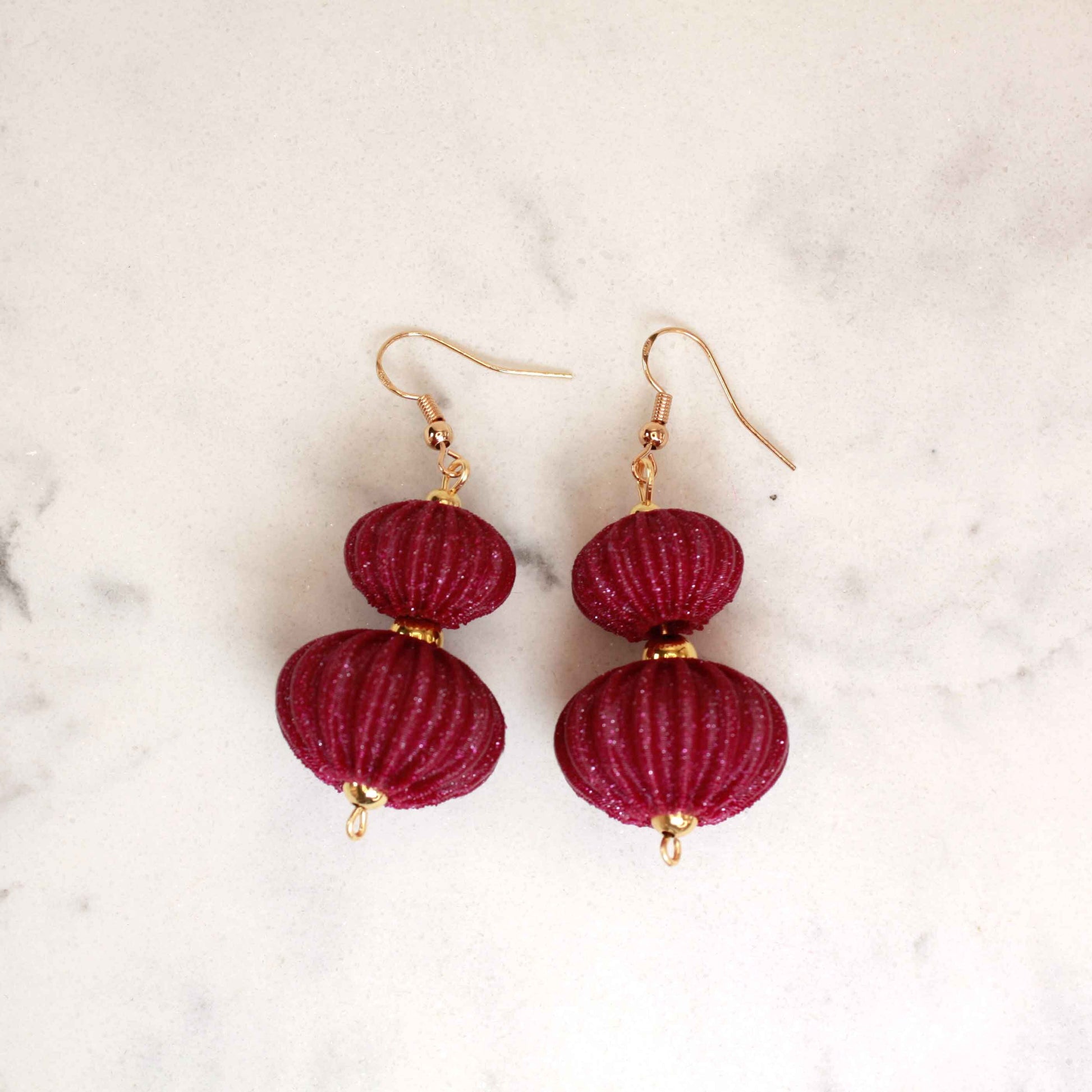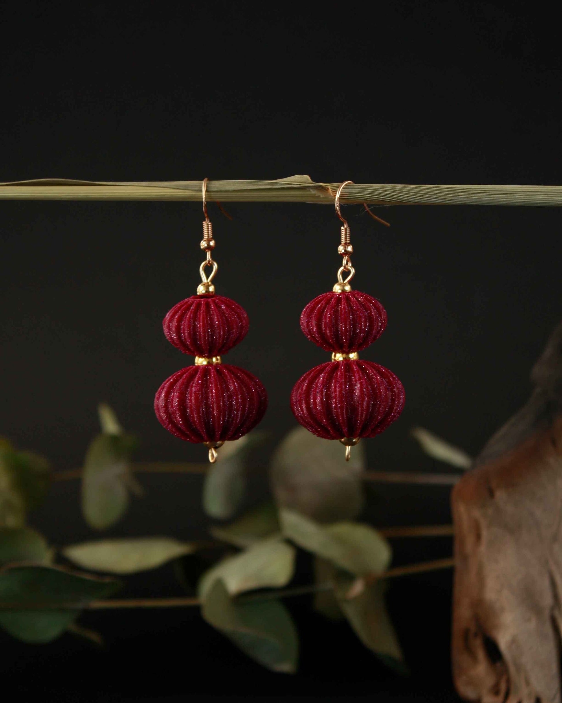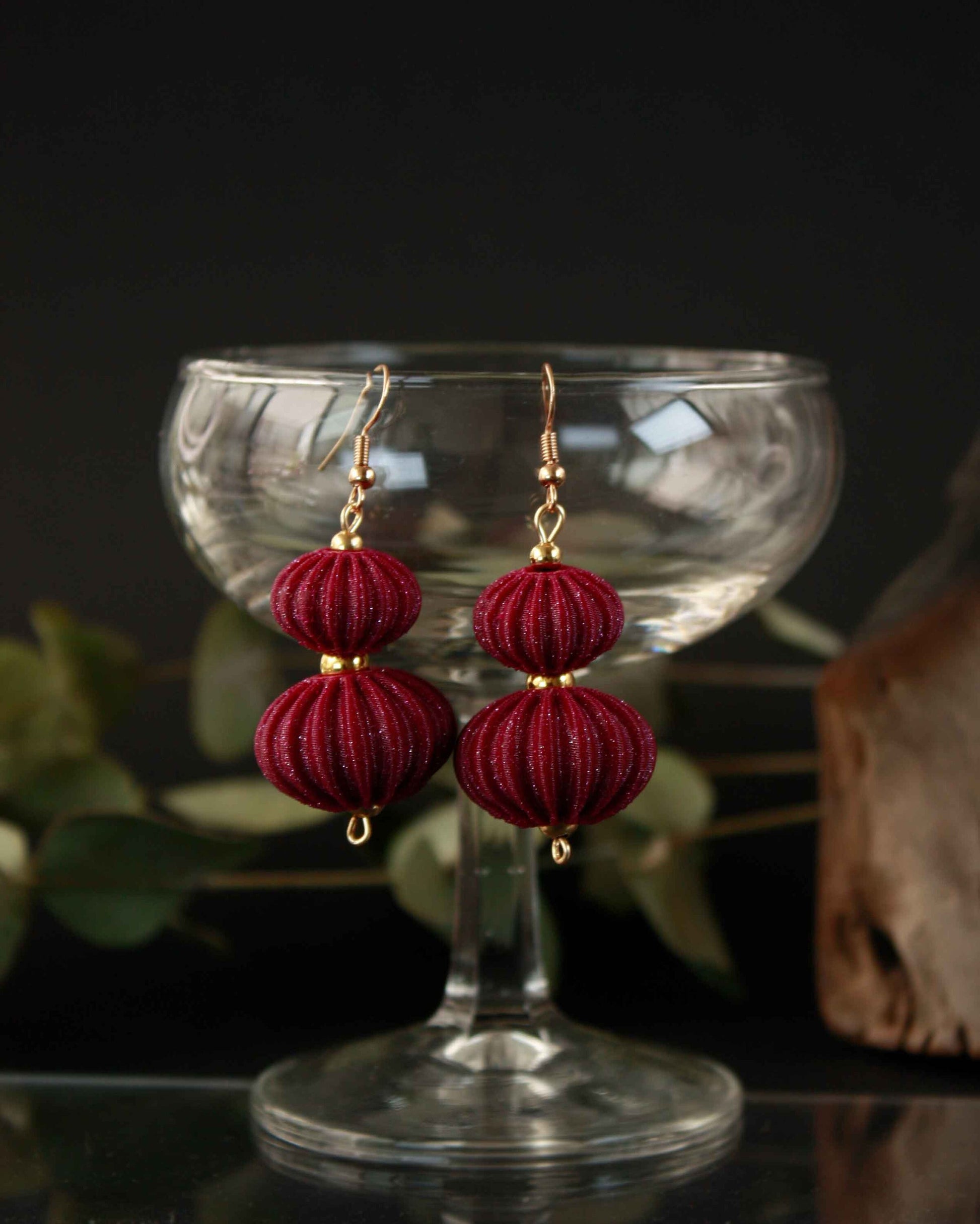 Boletia earrings from the Lukt collection, in Bordeaux, 3D printed, elegant and lightweight.