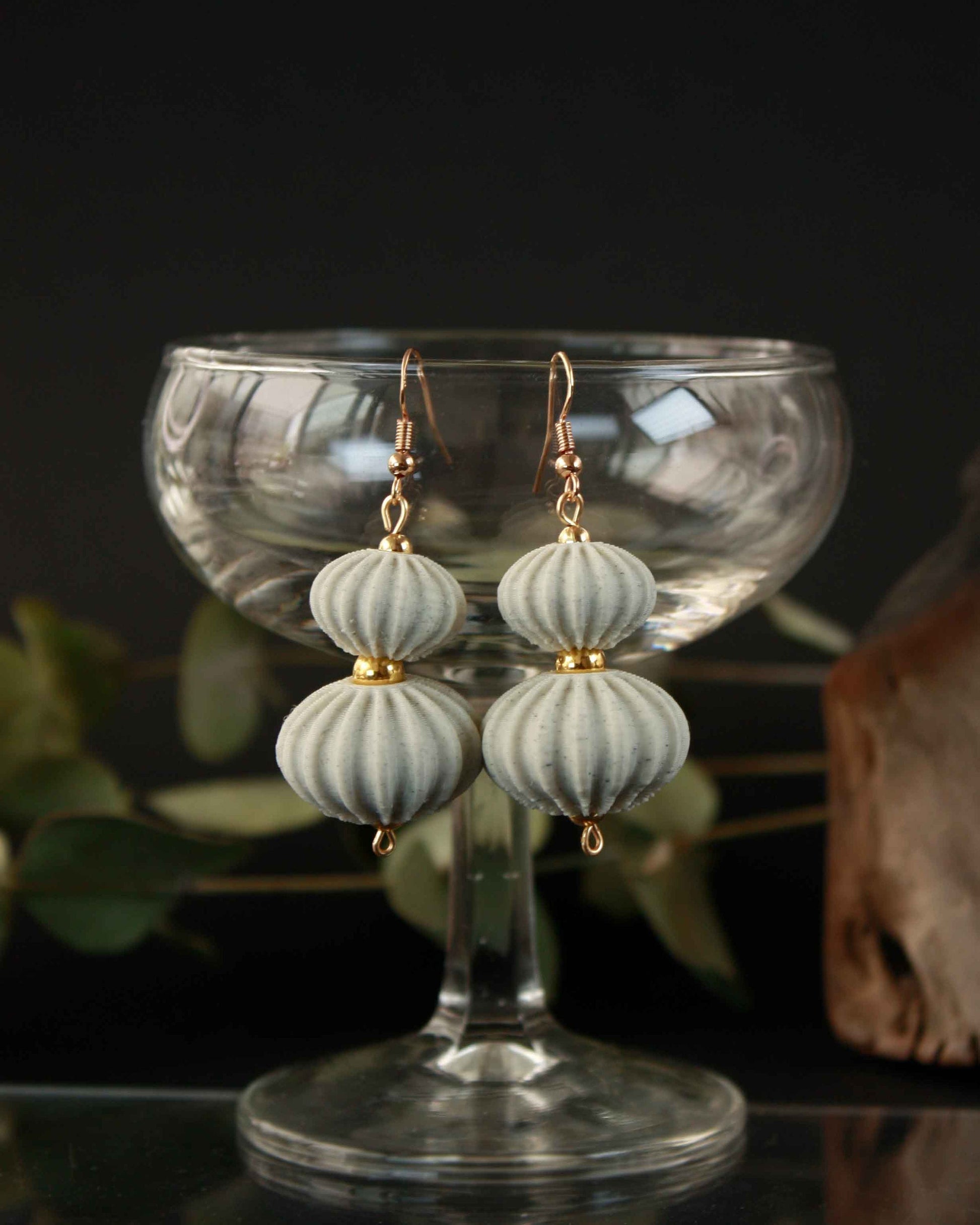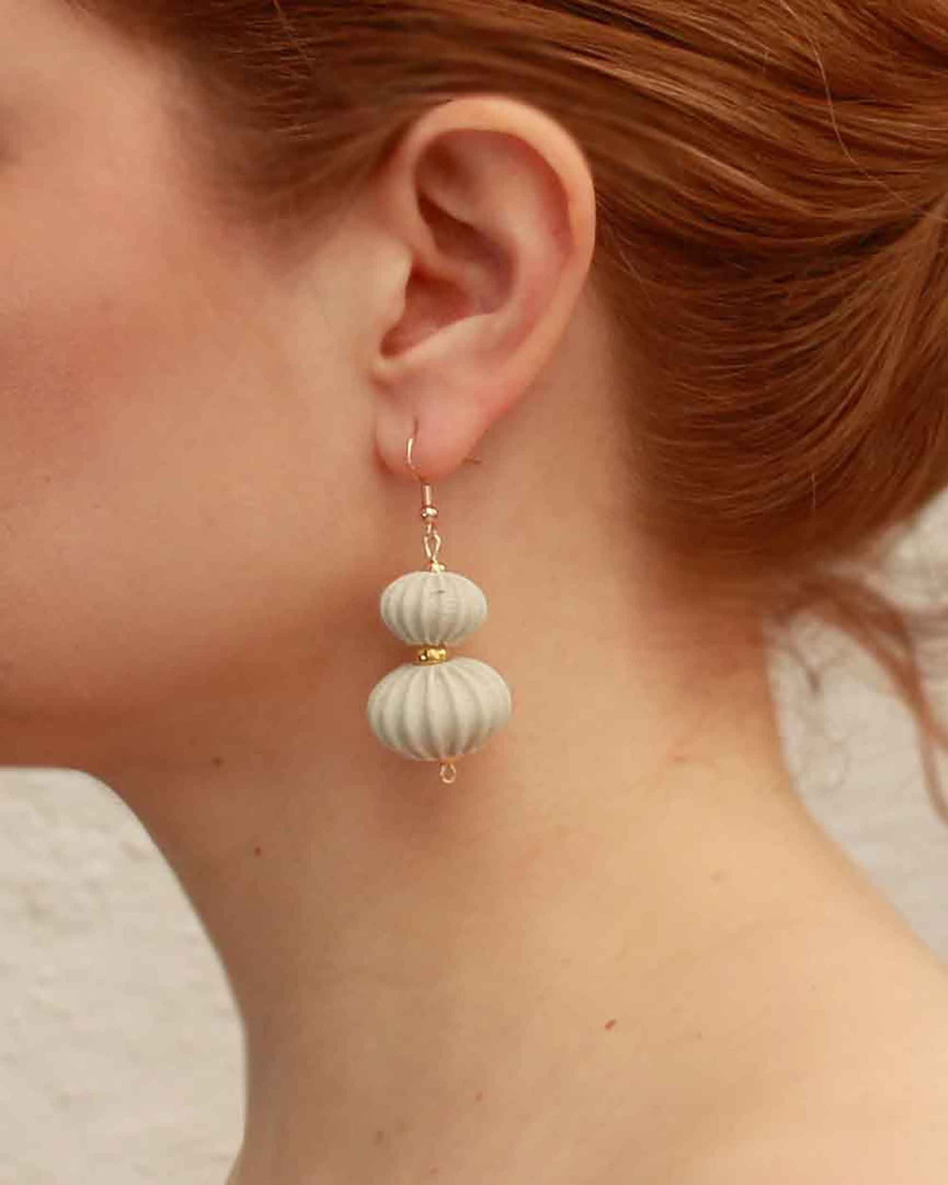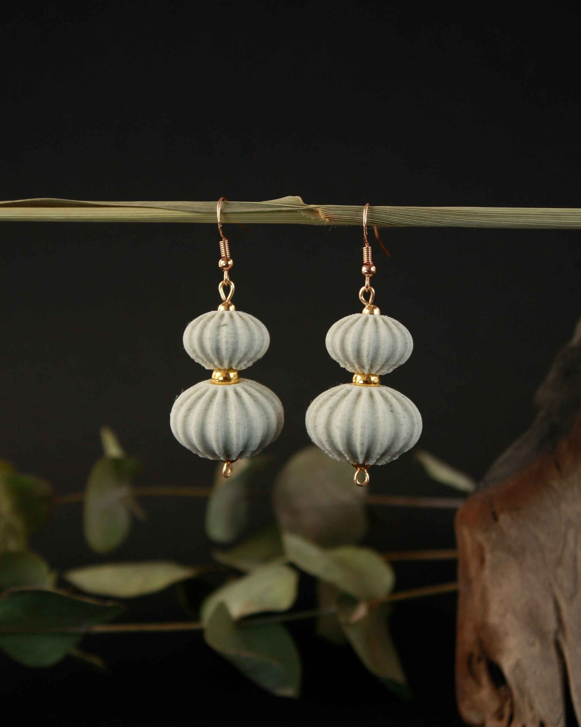Boletia earrings from the Lukt collection, in Marble color, 3D printed, elegant and lightweight.