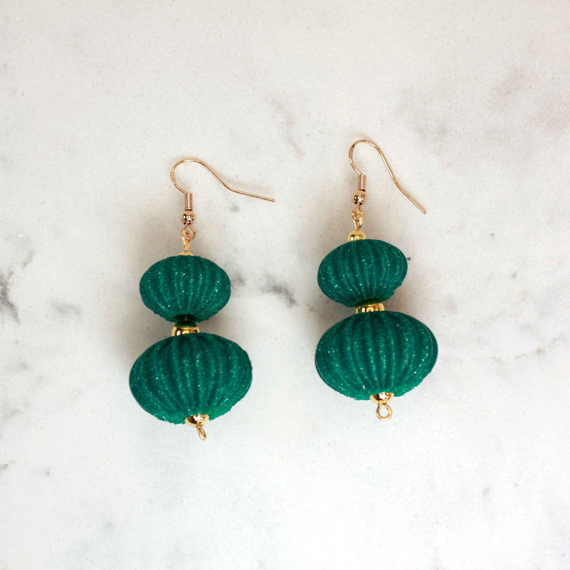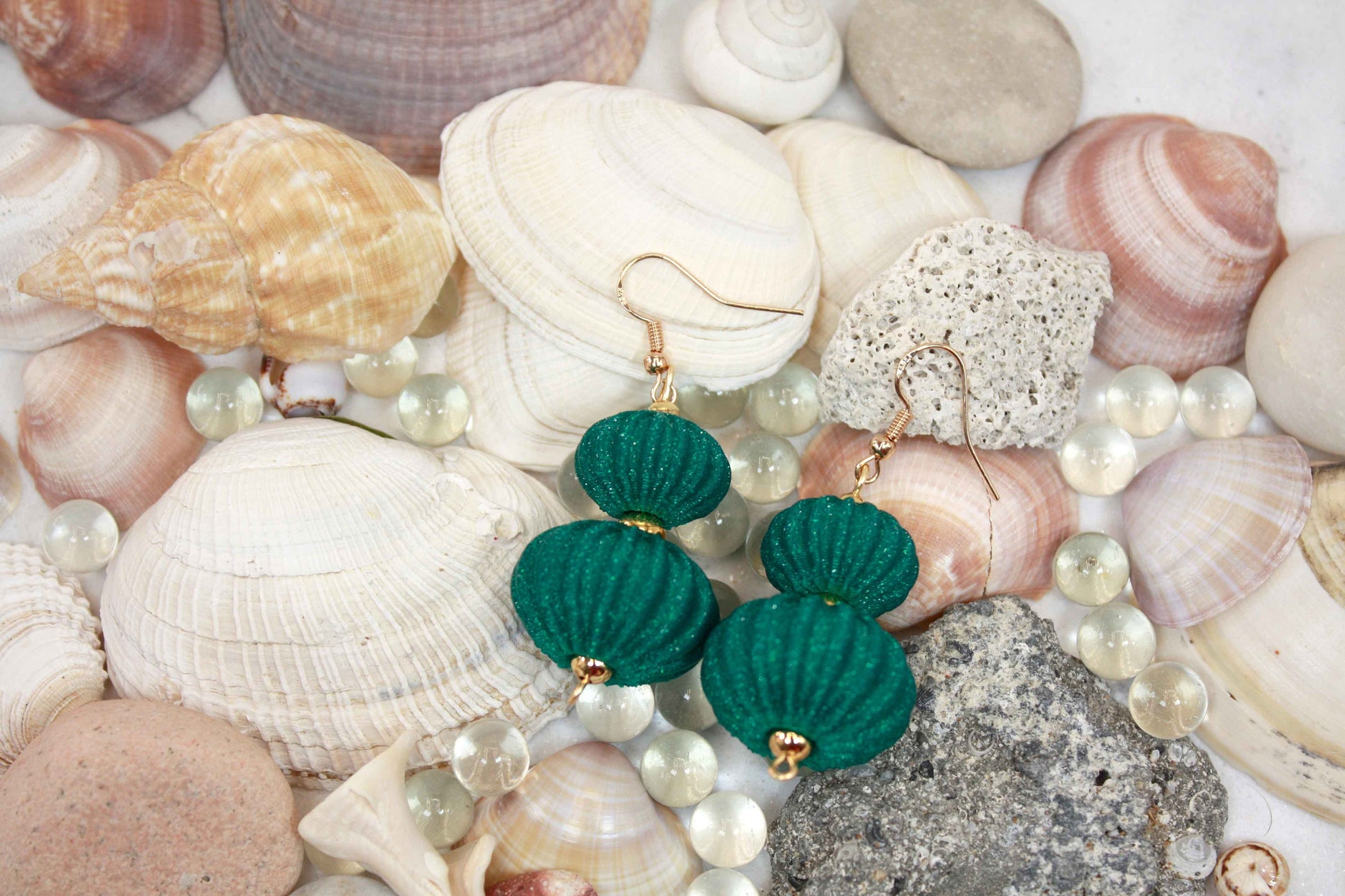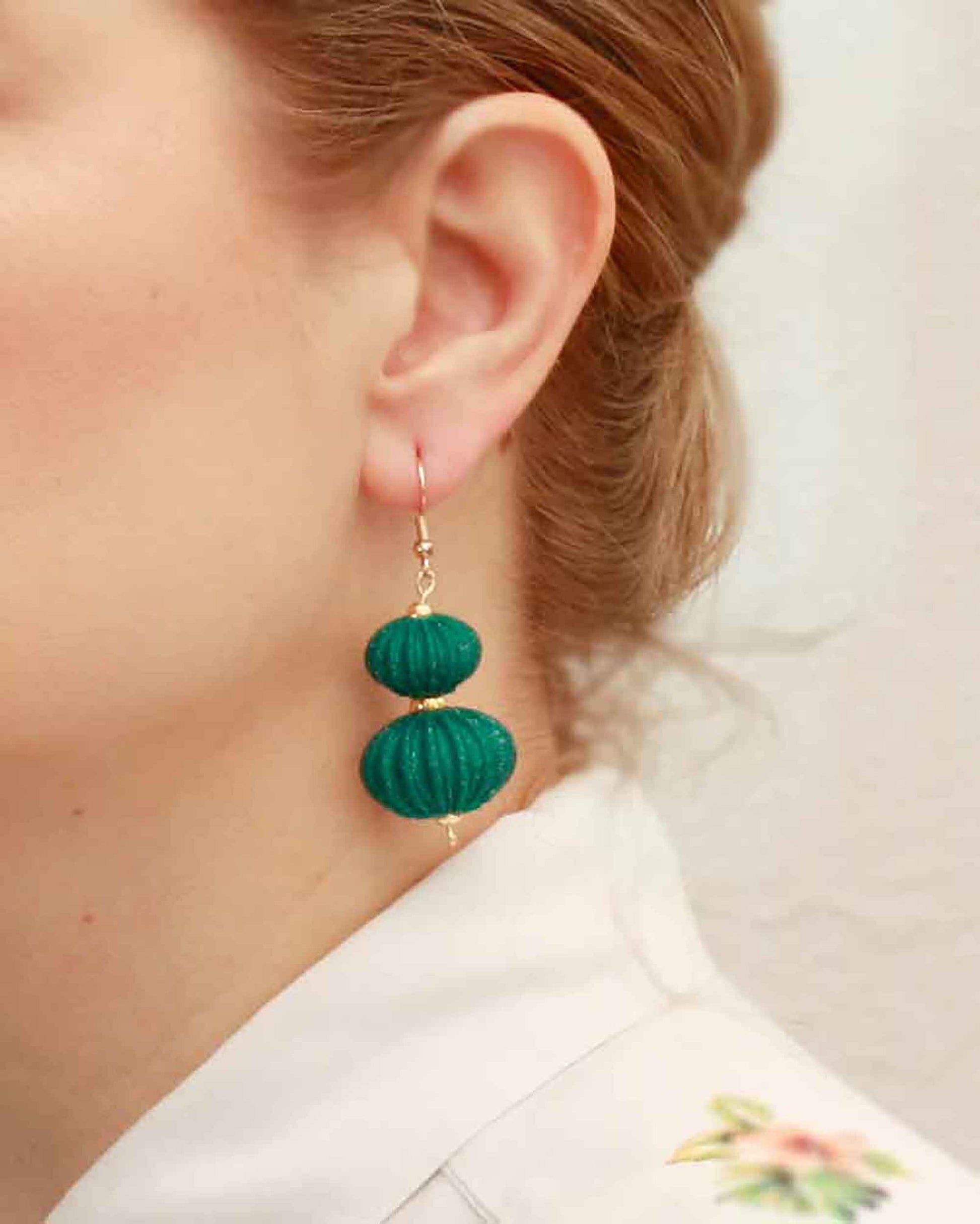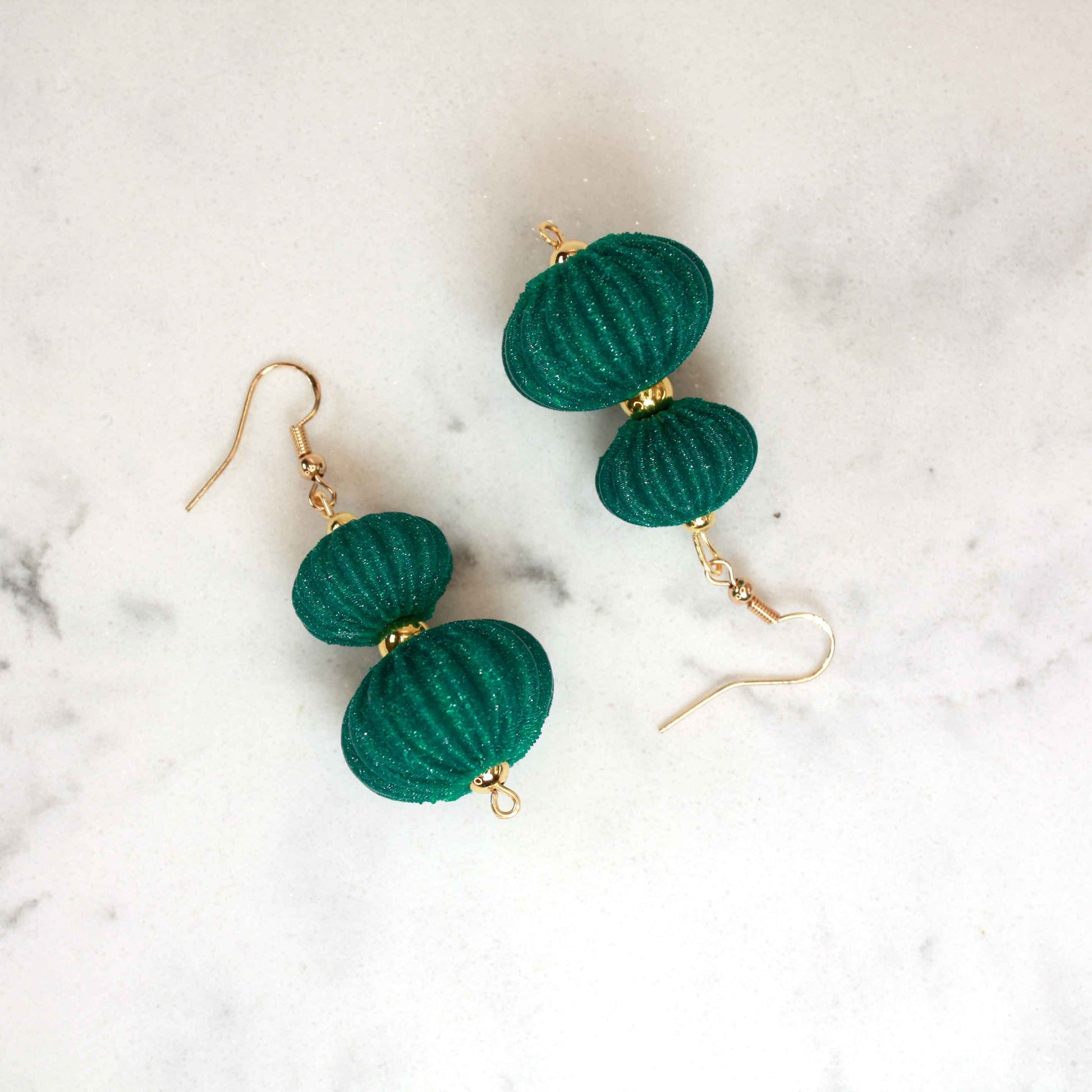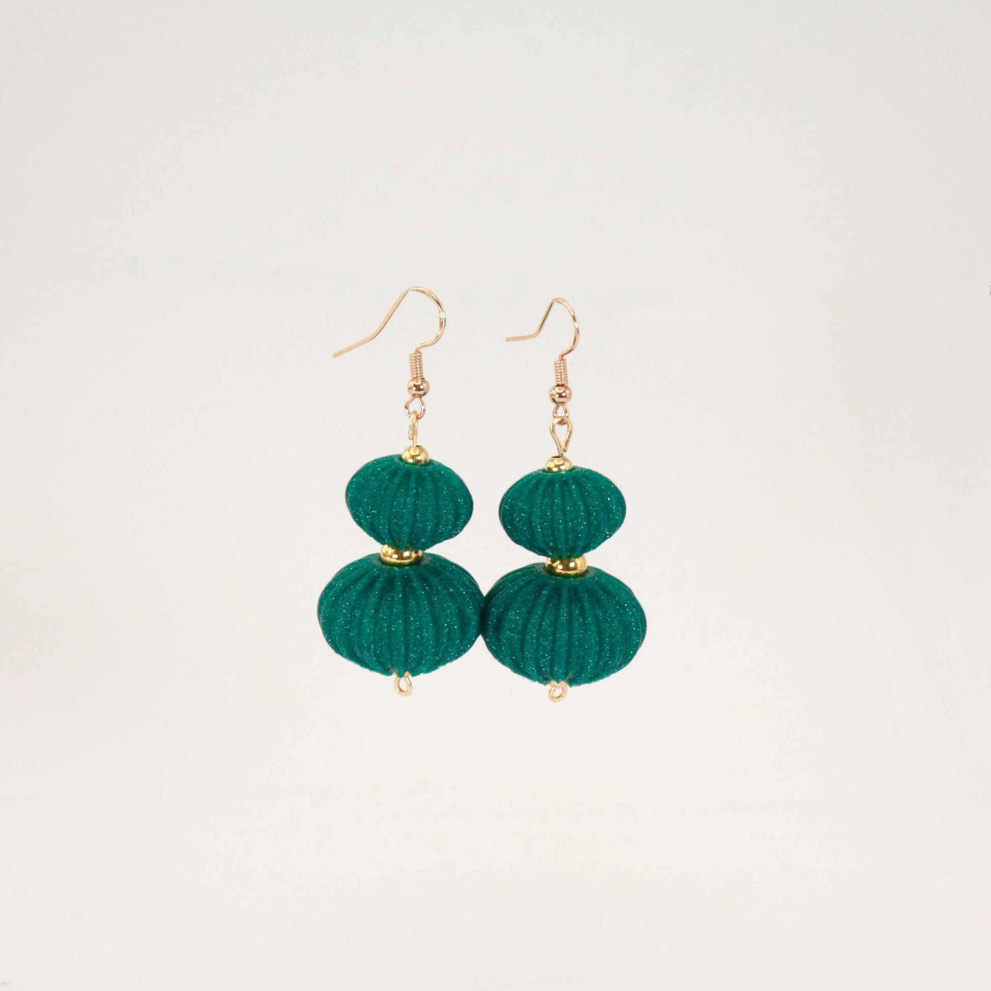 Boletia earrings from the Lukt collection, in Emerald, 3D printed, elegant and lightweight.