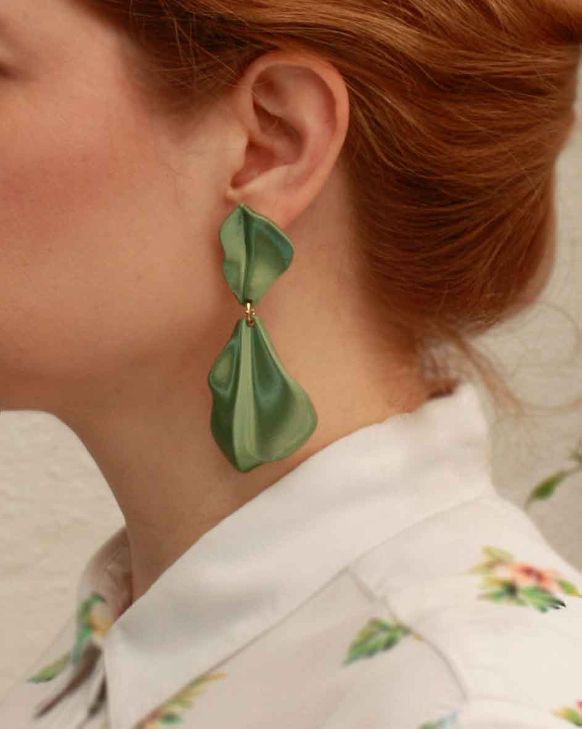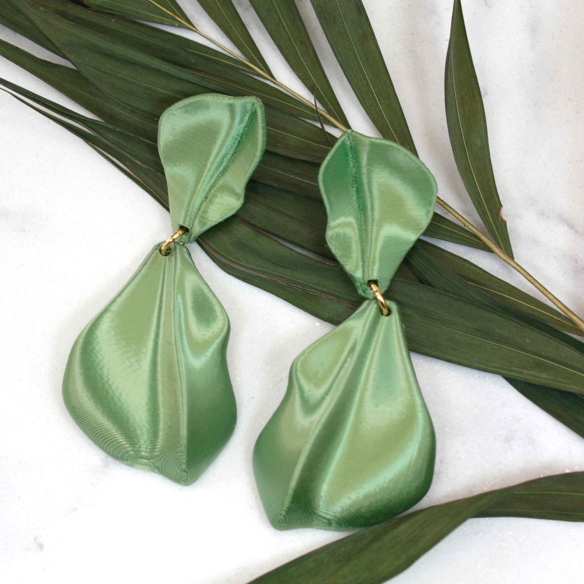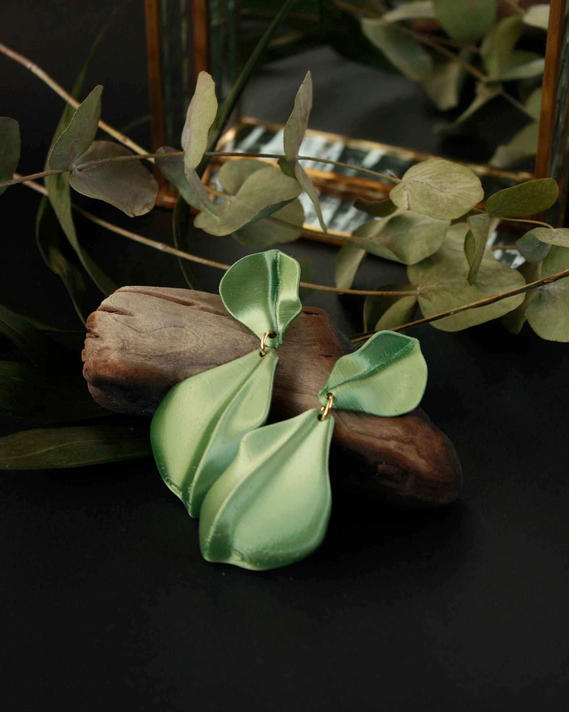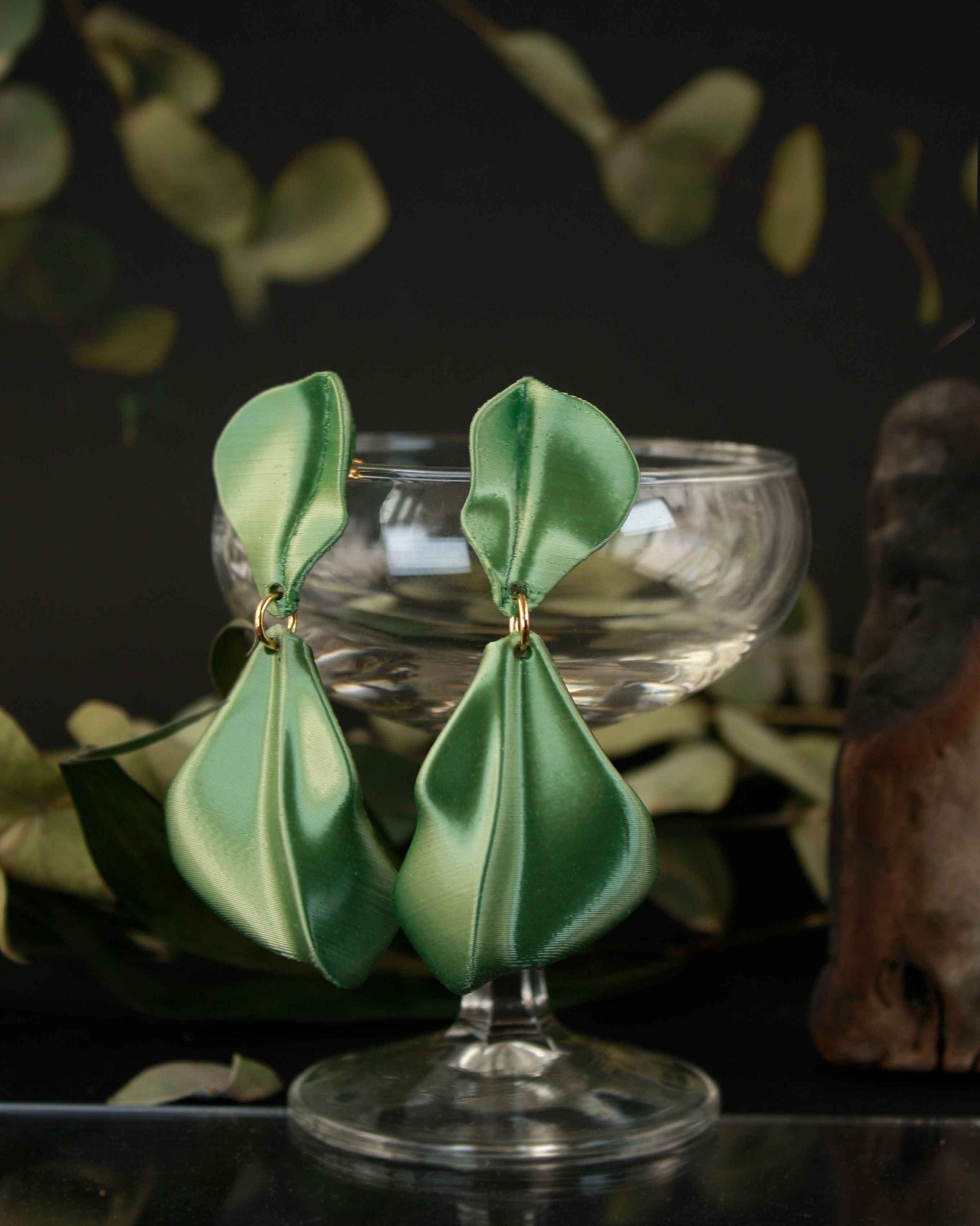 Hanabira earrings, in Leaf color, 3D printed, very light and perfect for events.