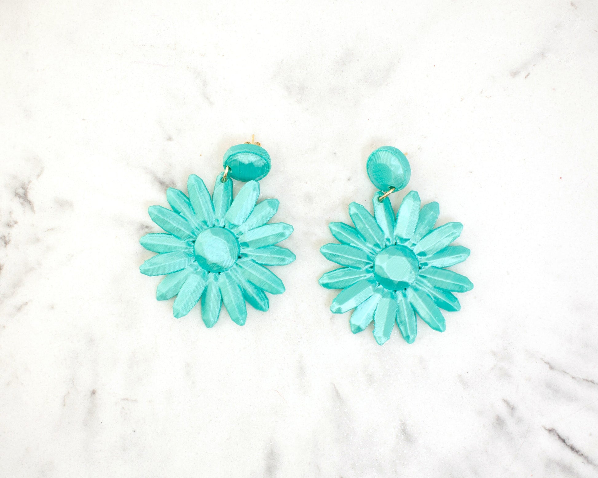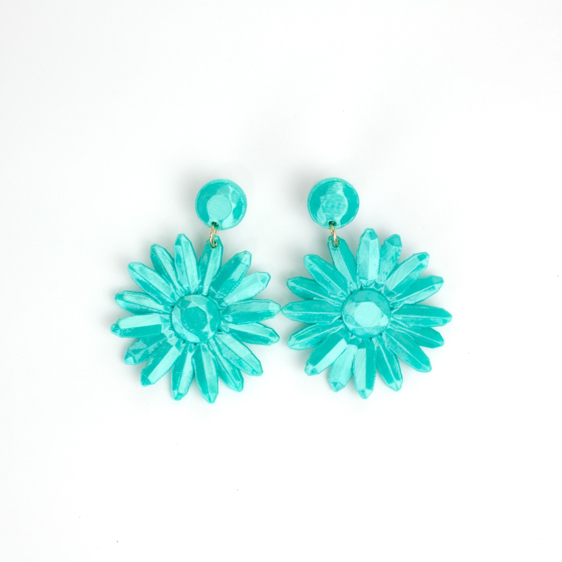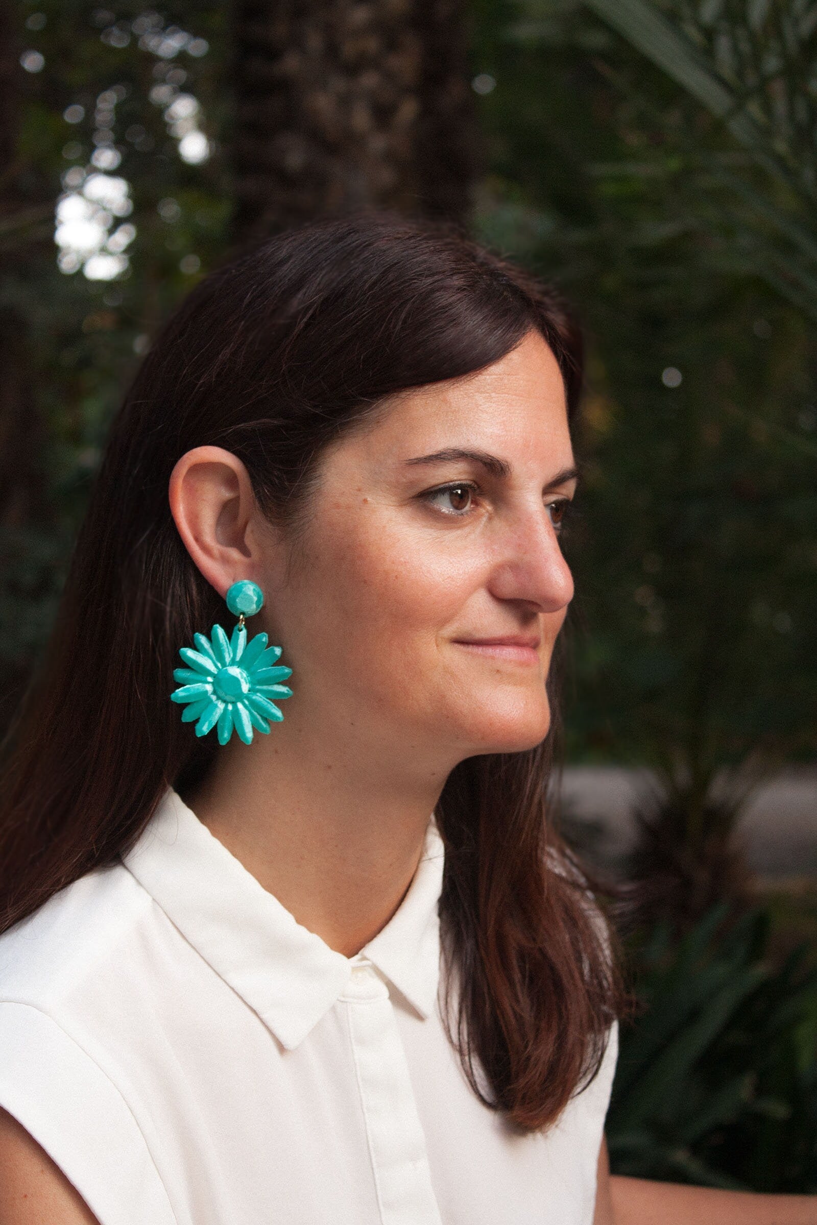 Turquoise like the sea in summer, or like your eyes... From the Marguerite collection. Materials Materials: Pla and gold plated sterling silver. Length: 6.5 cm Closure Type: Butterfly Color: Turquoise and Emerald Use and care The Carpenter's earrings are very durable; they shouldn't break or become damaged if you use them every day. In any case, this is a handmade product, and here are some quick tips for caring for your piece: Avoid contact with heat sources, excessive humidity during storage, and liquid and corrosive substances such as oil, creams, alcohol, or colognes. To keep your jewelry looking perfect, clean it with a damp cloth and dry it with a cotton cloth. If you have any questions about the care, cleaning, or handling of any of the designs, you can email us at info@lacarpintera.com At La Carpintera, we are not responsible for the misuse of items other than our recommendations or for the manipulation of our designs without our supervision. Delivery and return times Delivery times are as follows: Domestic Shipping: Spain (peninsula): 1-3 business days. Balearic Islands: 2-5 working days. Canary Islands, Ceuta and Melilla: 7-10 business days. Shipping to Europe: 3-5 business days Orders are processed once payment has been confirmed during the following business hours: Monday to Friday, 9:00 a.m. to 4:00 p.m. Orders placed outside of these hours will be processed the following business day. We do not ship on Saturdays, Sundays, or holidays. Thank you!