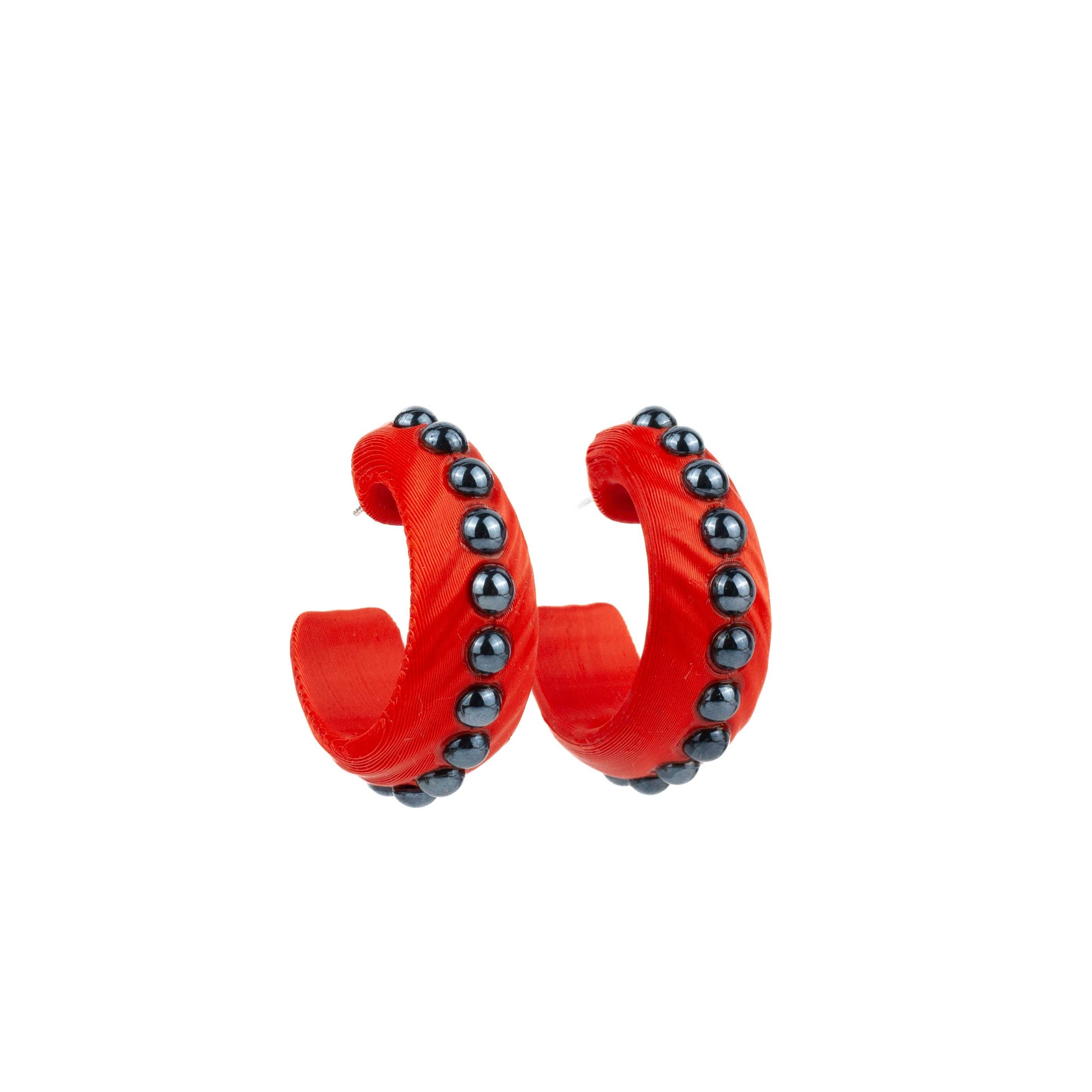 Te encanta ir de negro porque te queda muu bien, pero no te gusta que parezca que vas de gótica o que estás de luto, pues has encontrado el complemento perfecto: los Aros Aurora en Rojo con perlas de cerámica en grafito. Son la guinda del pastel, los mejores amigos de tu pintalabios rojo favorito. No necesitas nada más, póntelos y a comerte el mundo! 🔥🐦🔥