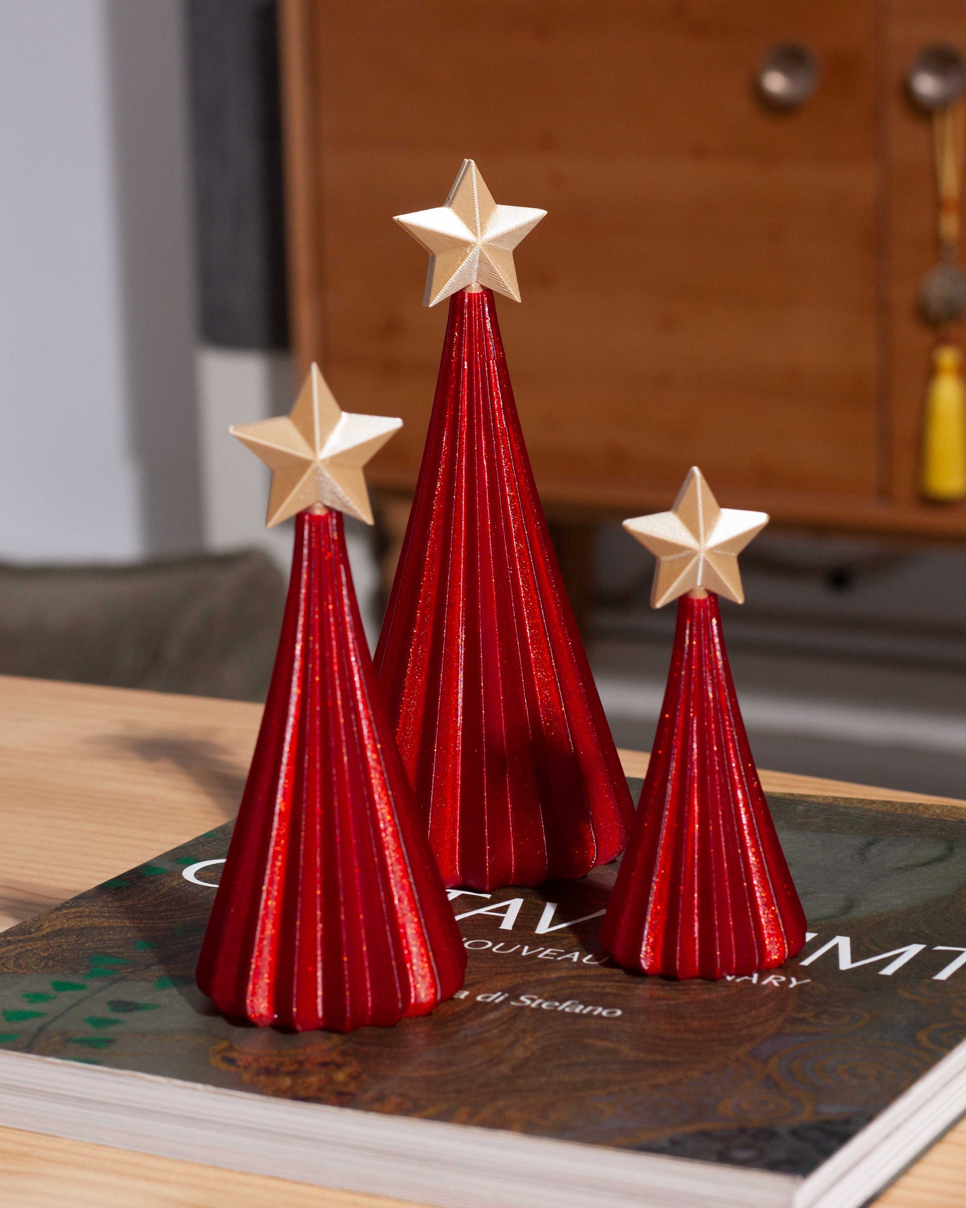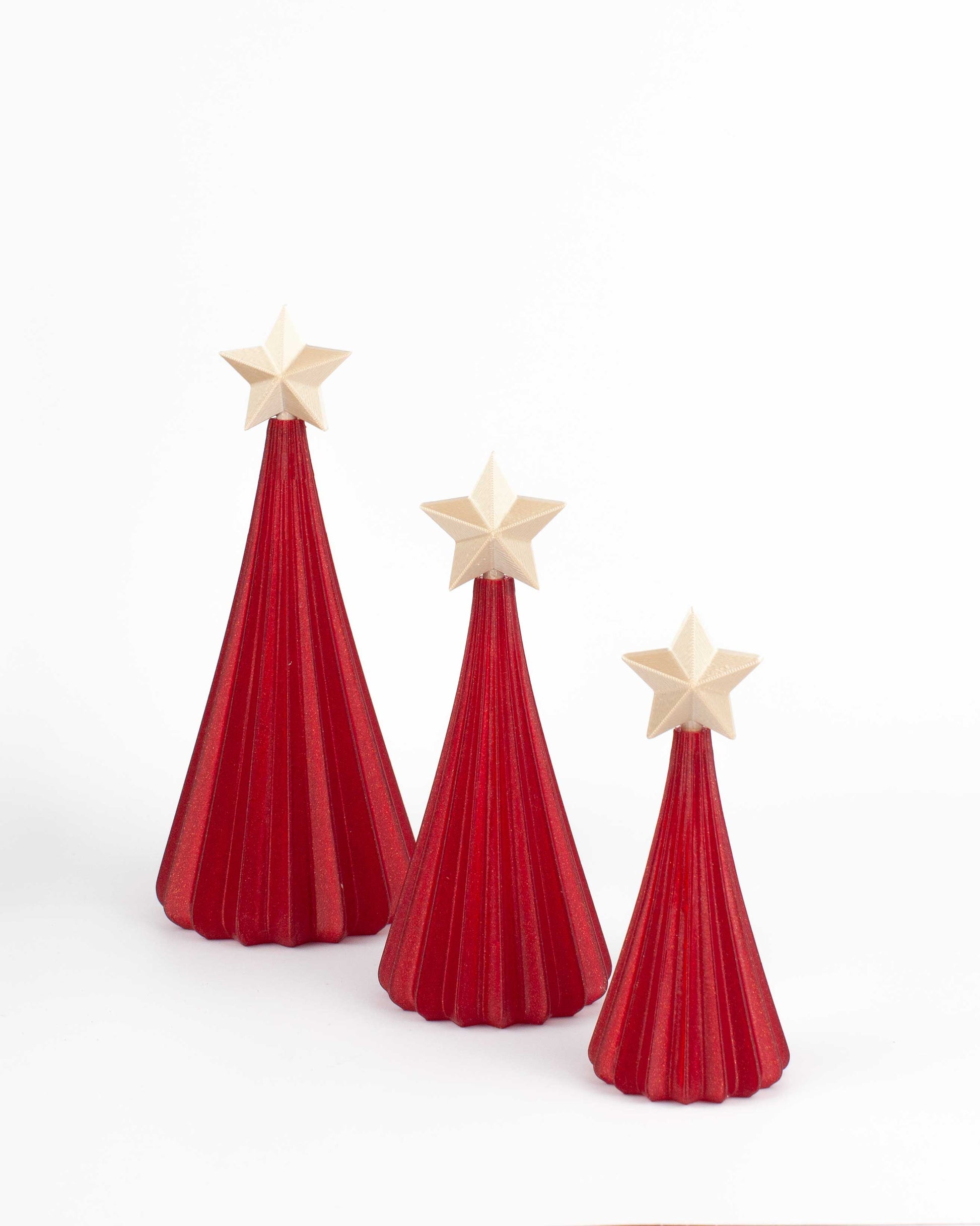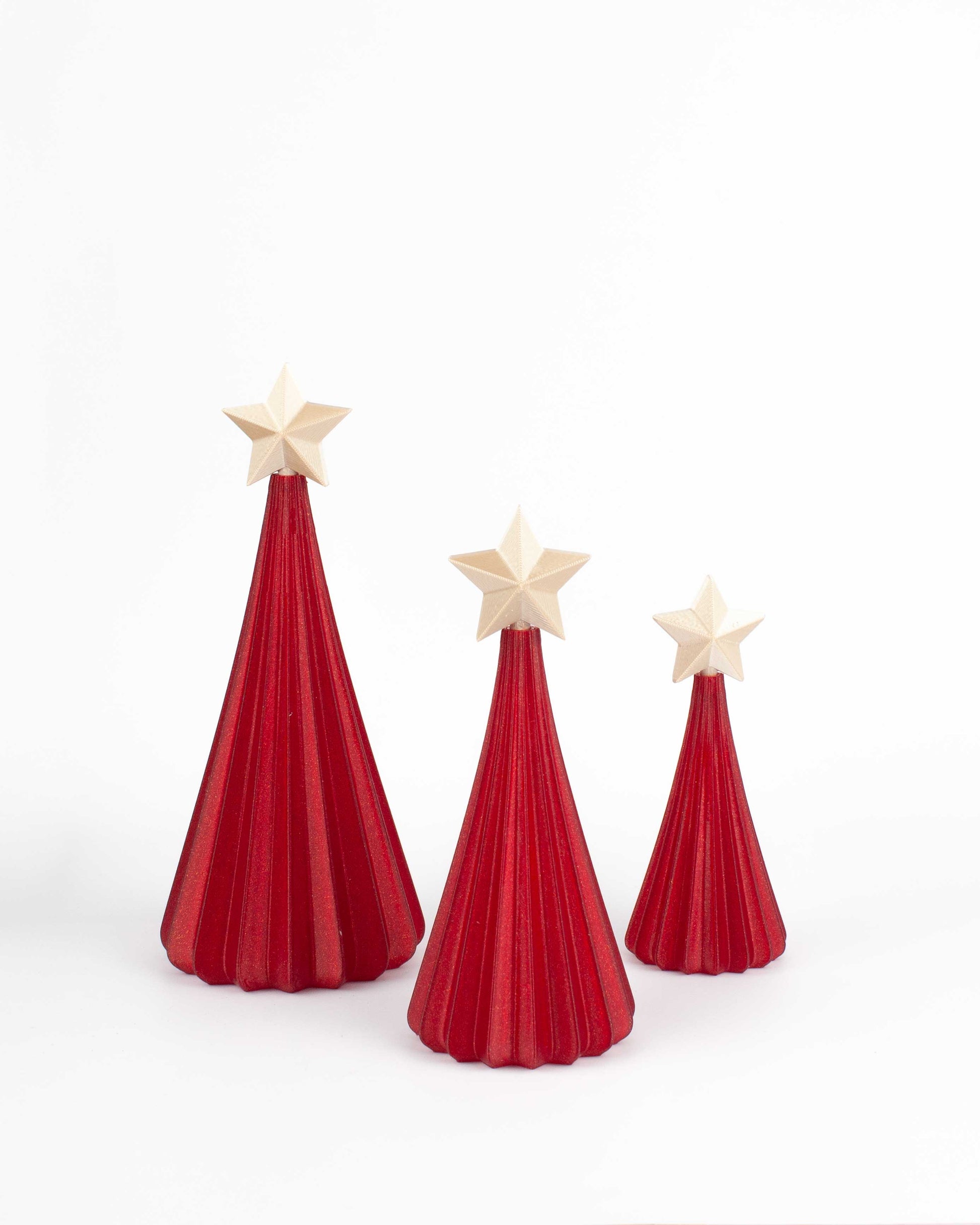 El árbol más alto mide 19,5 cm, el mediano 16 y el pequeño 13 cm.