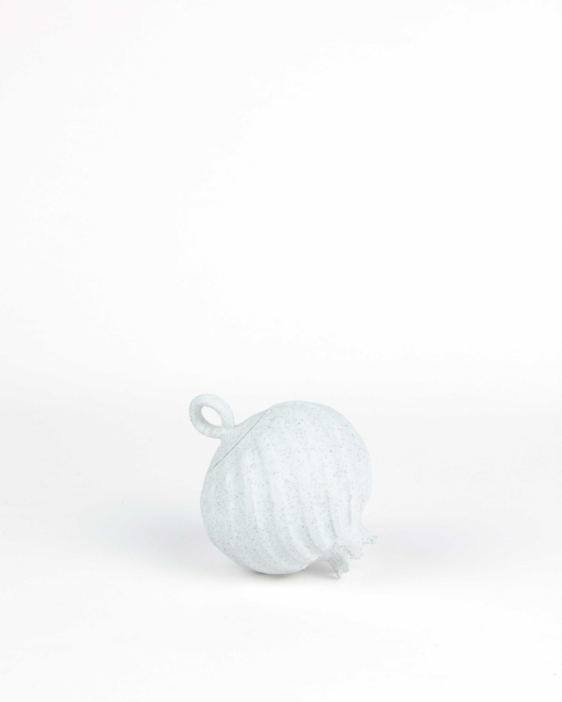 Tres bonitas granadas navideñas inspiradas en la emblemática granada de Elche, ahora en un sofisticado blanco mármol. Creadas con dedicación artesanal y hechas con impresión 3D, estas bolas de árbol te acompañan en la celebración de tus tradiciones más queridas. Cuelga del árbol piezas sostenibles que honran tu herencia mientras abrazan la innovación. Perfectos para quienes valoran la autenticidad y desean compartir un mensaje de cuidado hacia el planeta.