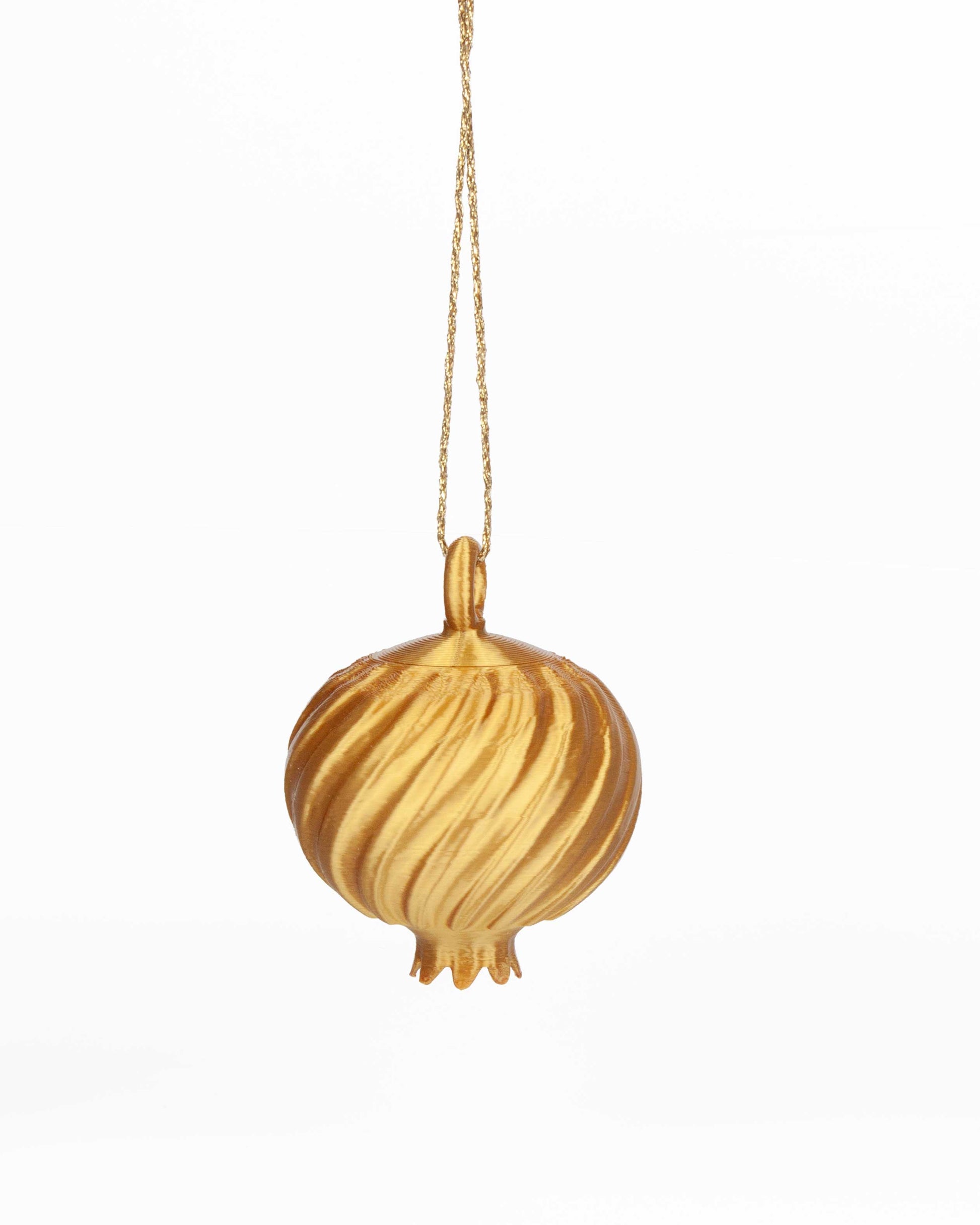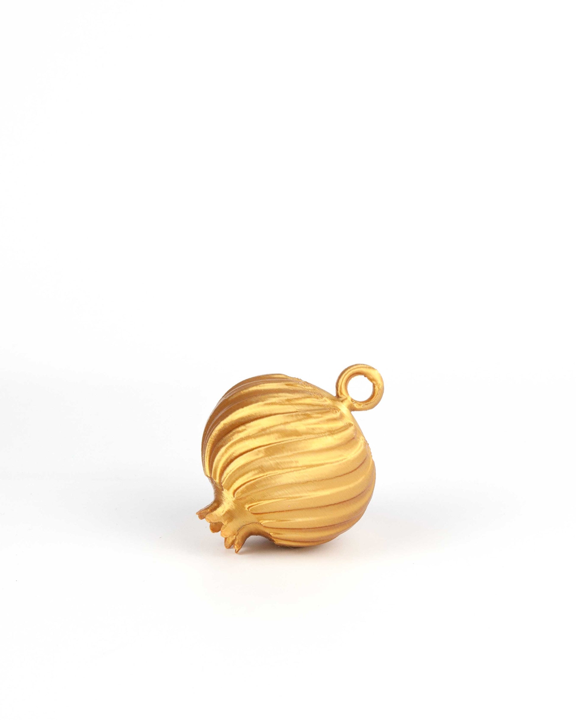 Con un toque dorado y artesanal, esta bola de Navidad en forma de granada aporta una chispa especial al árbol. Hecha con impresión 3D y materiales respetuosos con el medio ambiente, es una fusión moderna de lo local y lo sostenible. Un guiño a nuestro entorno ilicitano y al diseño actual para que esta Navidad brilles de una forma única, elegante y muy eco.