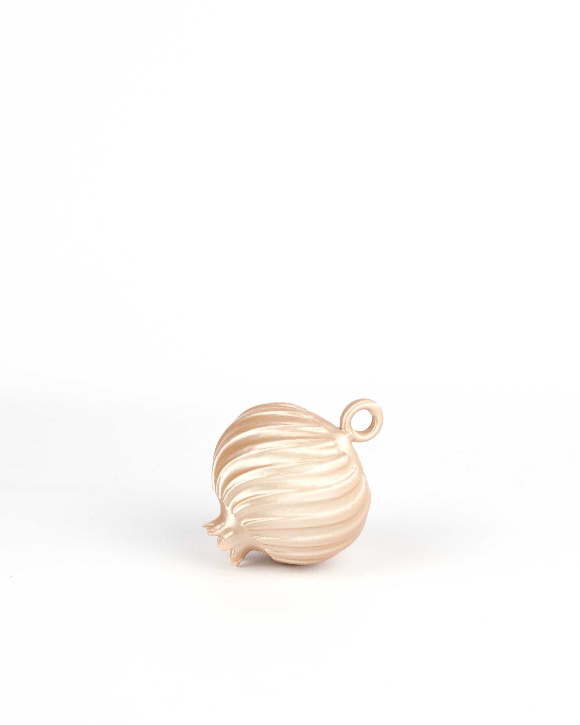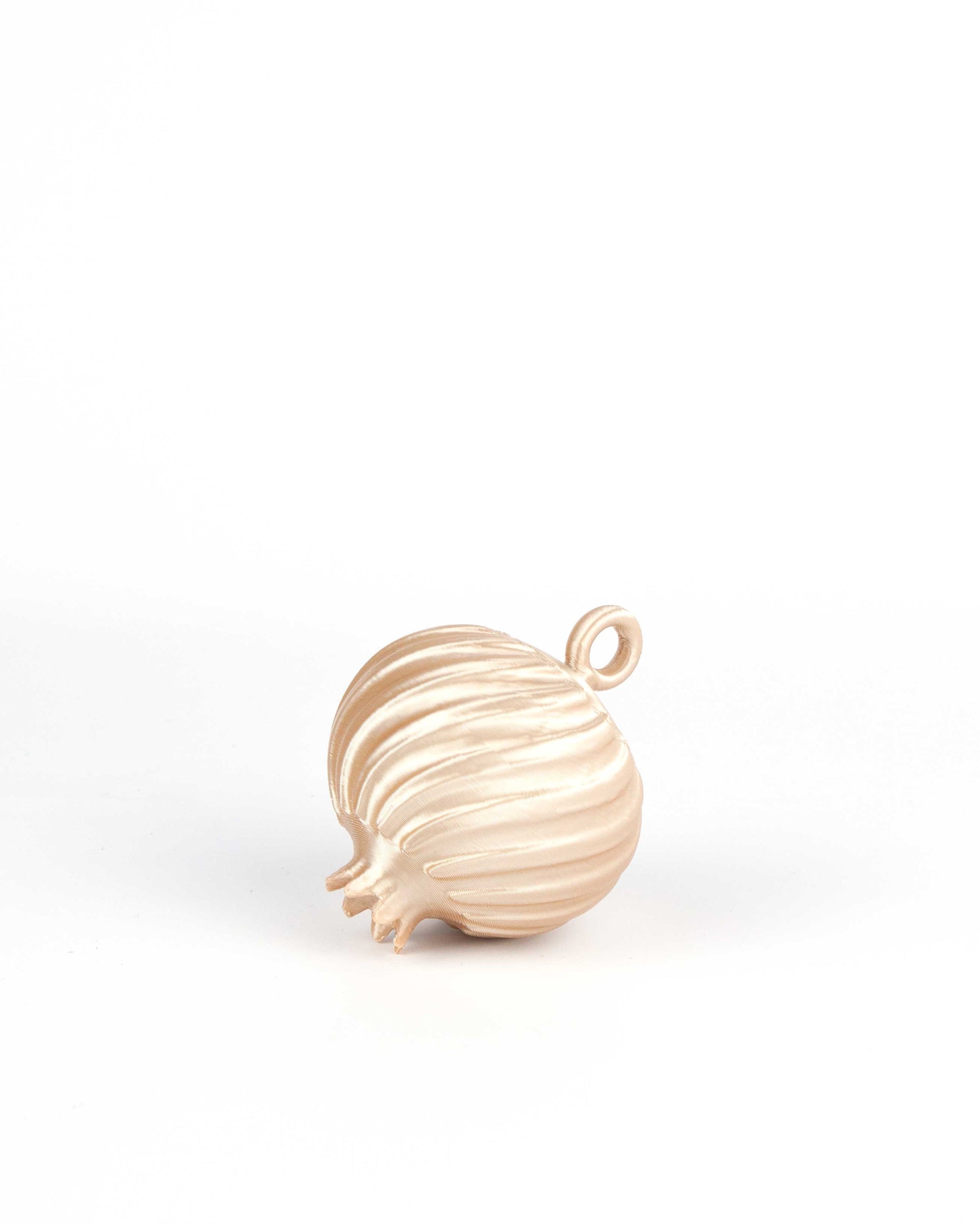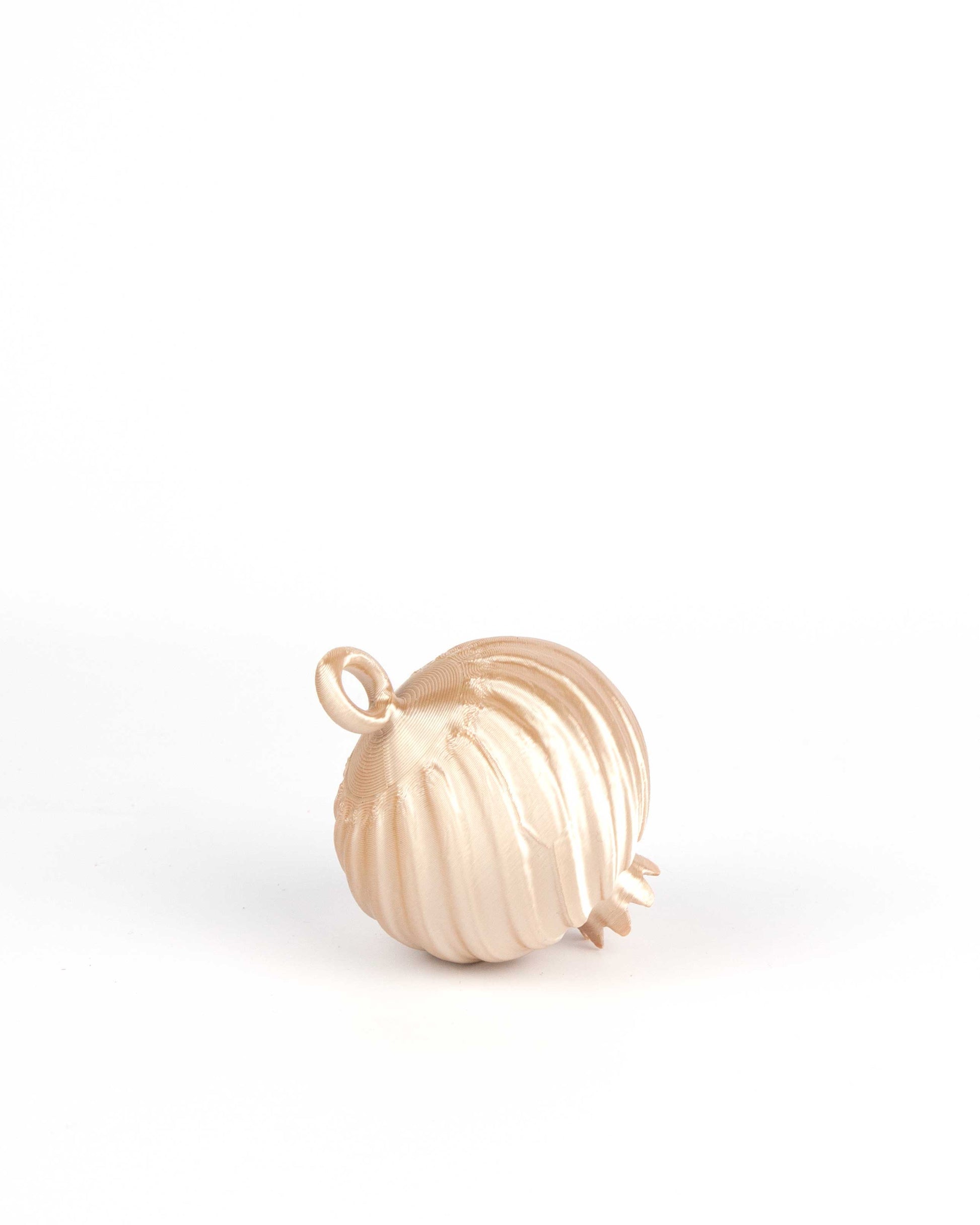 Esta granada navideña en tonos champán representa la fusión perfecta entre artesanía contemporánea y conciencia ambiental. Elaborada mediante impresión 3D con un diseño exclusivo, constituye un adorno de gran refinamiento para árboles que demandan distinción. Su estética natural y sostenible la convierte en la opción ideal para decoradores que valoran la calidad, la originalidad y la responsabilidad ecológica. Un complemento navideño que refleja buen gusto y valores conscientes.