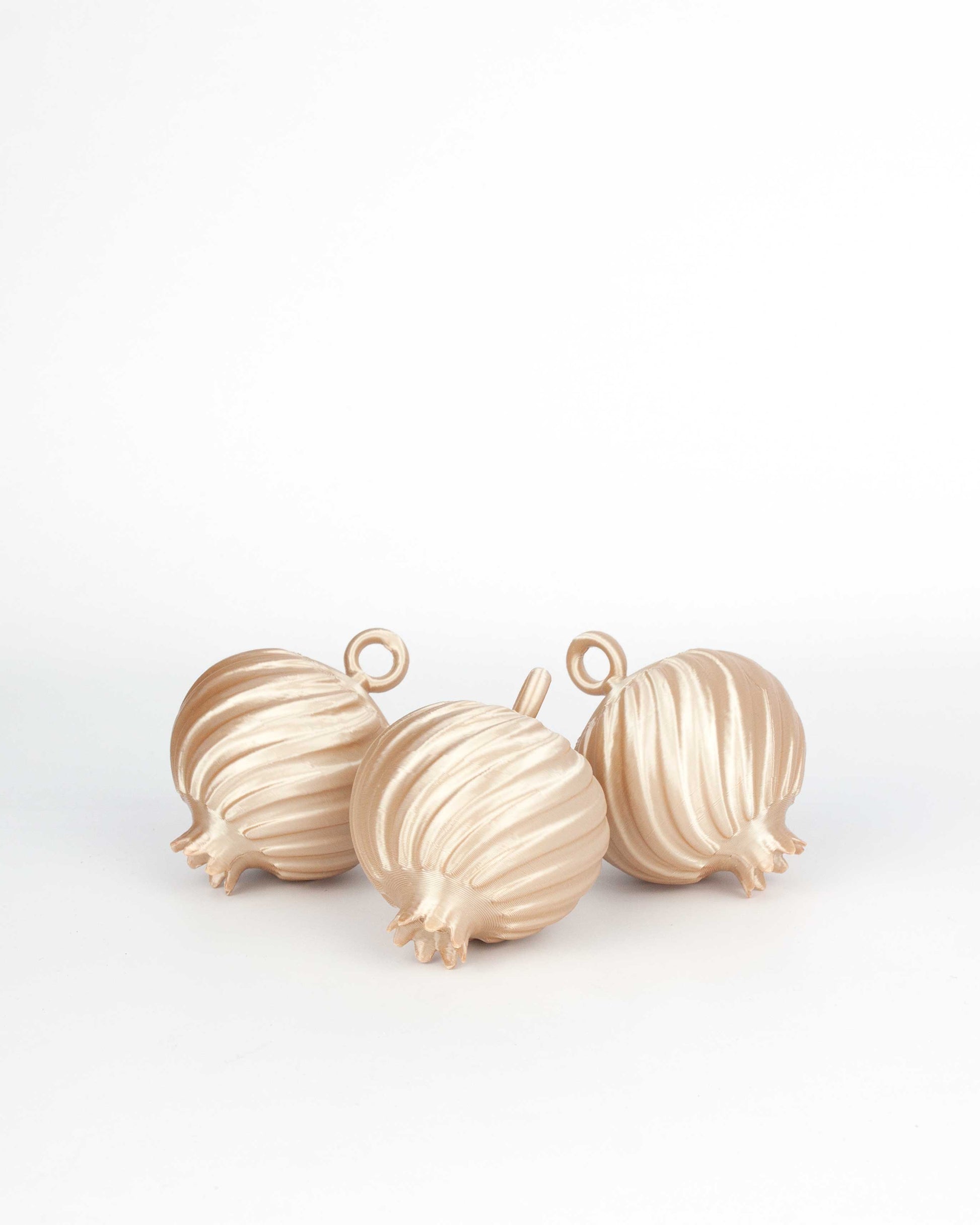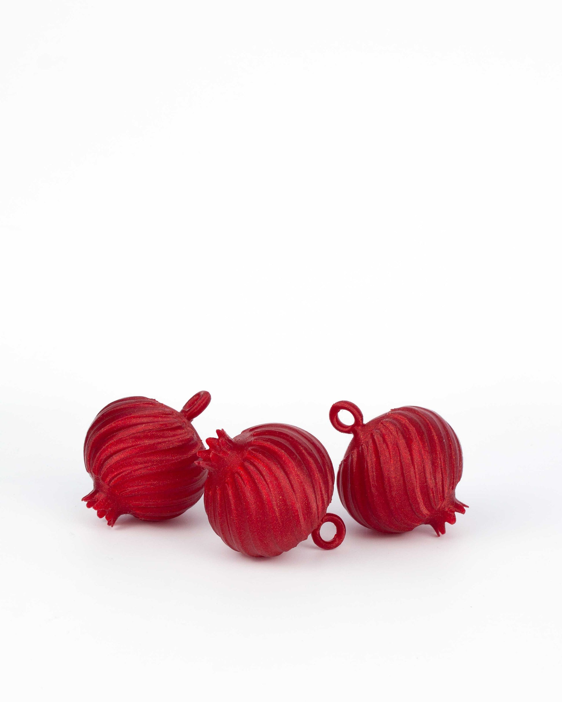 Este pack incluye el juego de 3 arbolitos en Rojo Rubí, 3 granadas en Rojo Rubí, 3 y 3 granadas en color Champán.