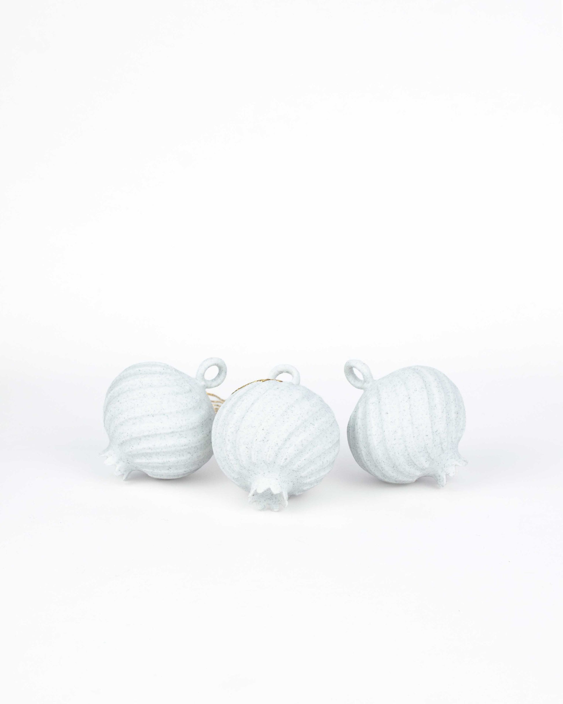 Este pack incluye el juego de 3 arbolitos en Blanco Mármol, 3 granadas en Blanco Mármol y 3 granadas en Moka.