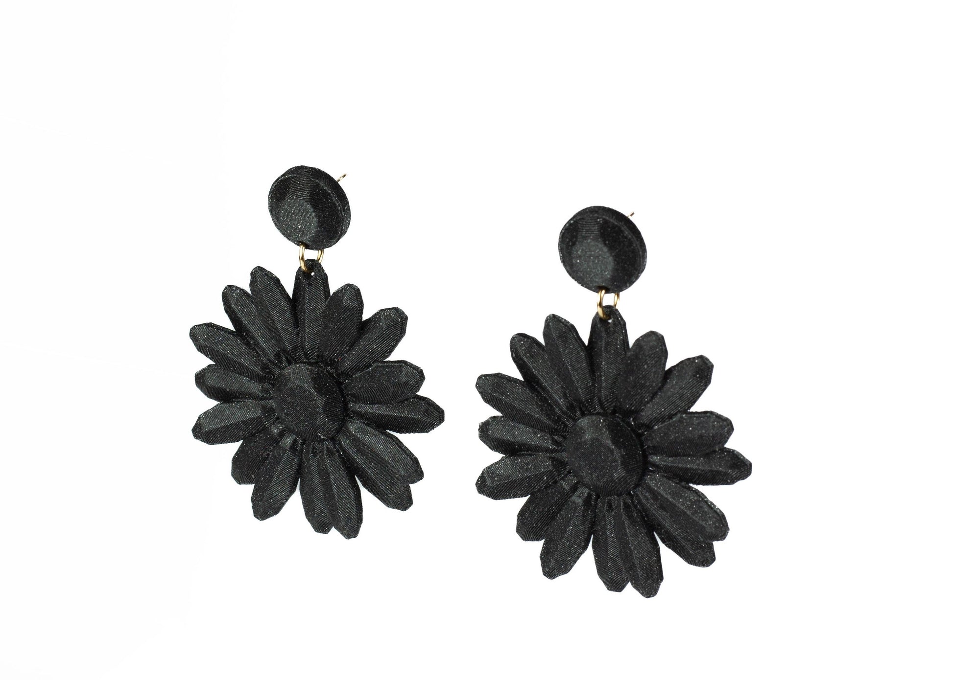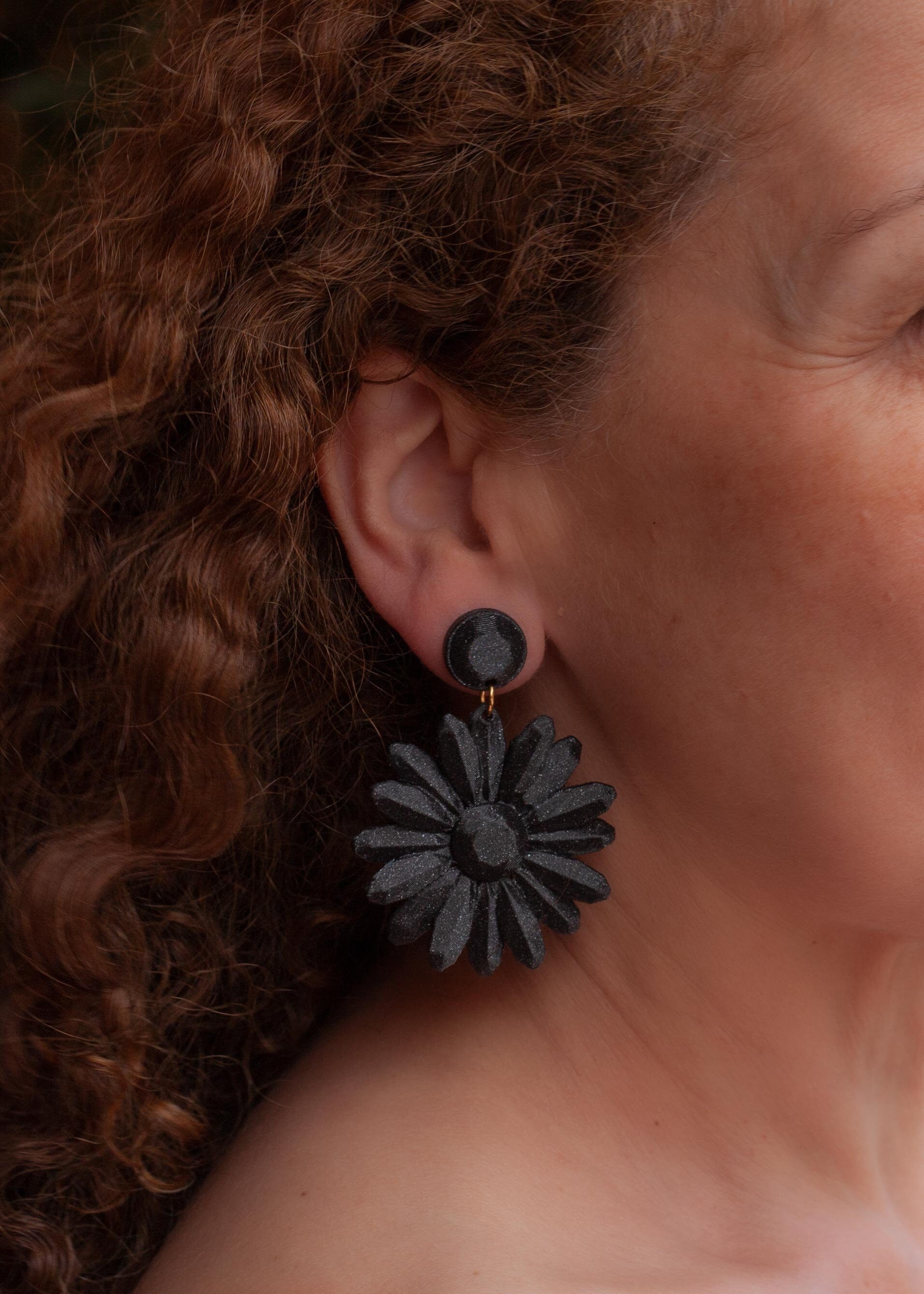 Pendientes Sevilha en Negro Galaxia, con destellitos metálicos para darles profundidad. Te los pones, y no te los quieres quitar para nada!